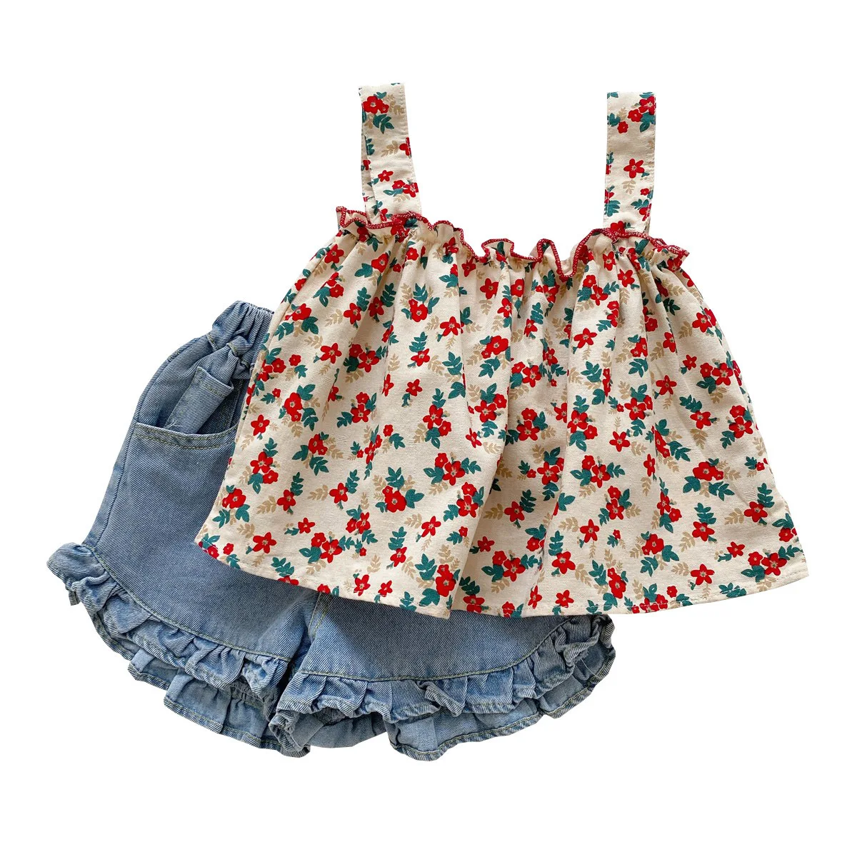 الصيف الاطفال الفتيات الزي مجموعات القطن طفل الفتيات مجزأة الحمالات قميص + السراويل الدعاوى لطيف 2 قطعة مجموعات للأطفال طفلة