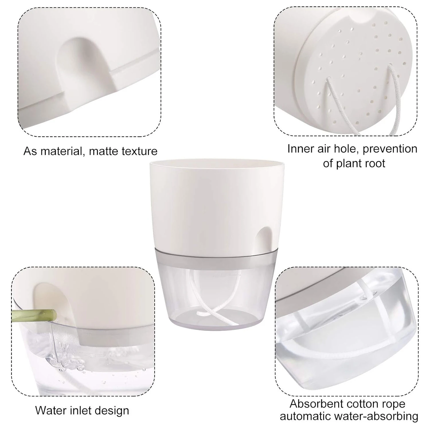 أواني الزهور 3 مجموعة من البلاستيك الشفاف ذات الطابقين وحبل قطني ذاتي الامتصاص أصيص زهور كسول مستلزمات حديقة الزهور العصرية