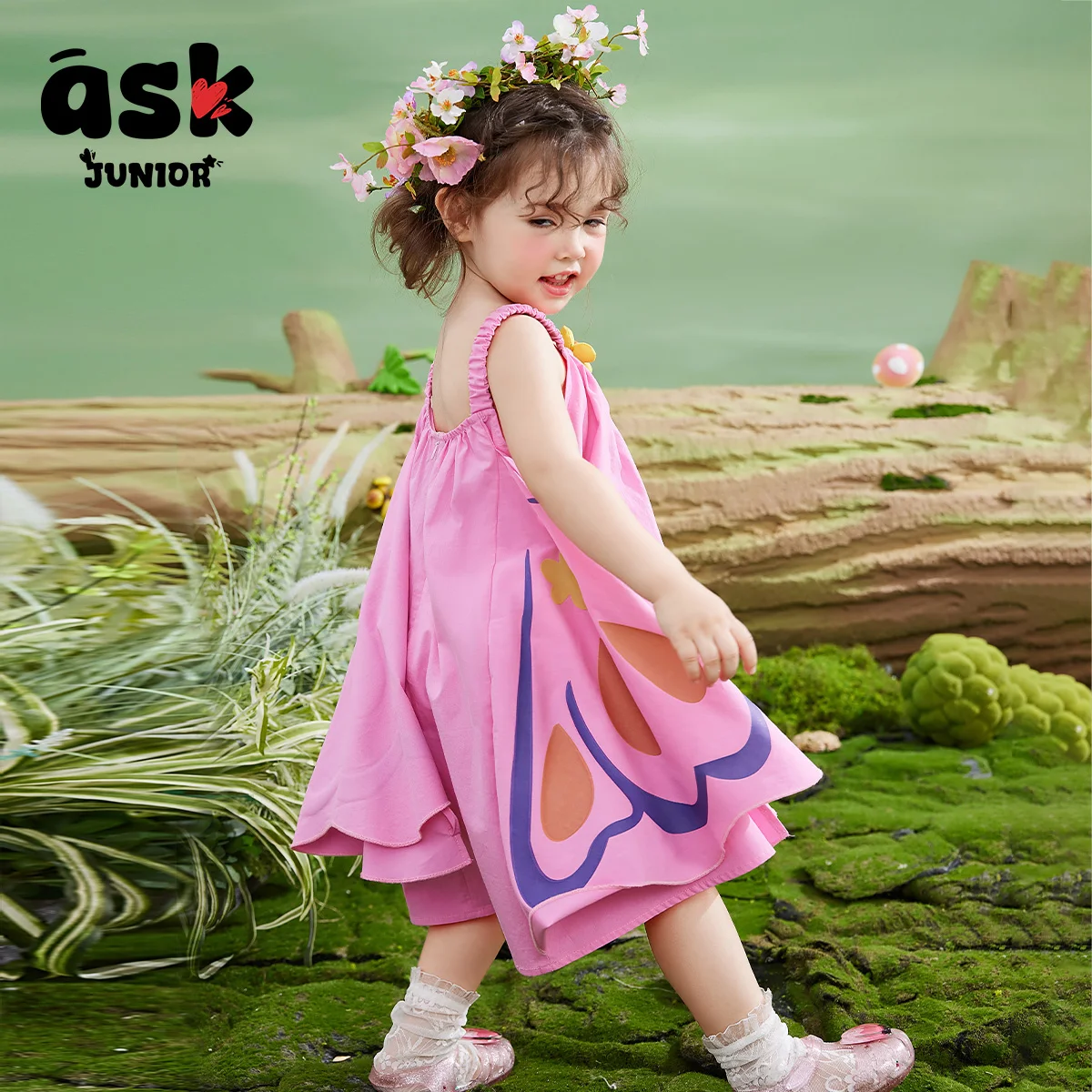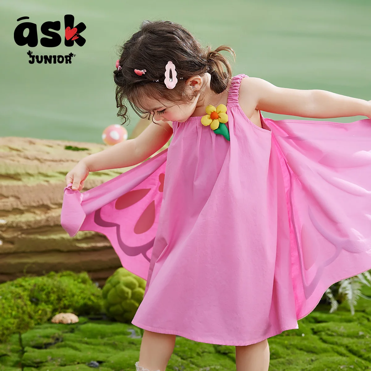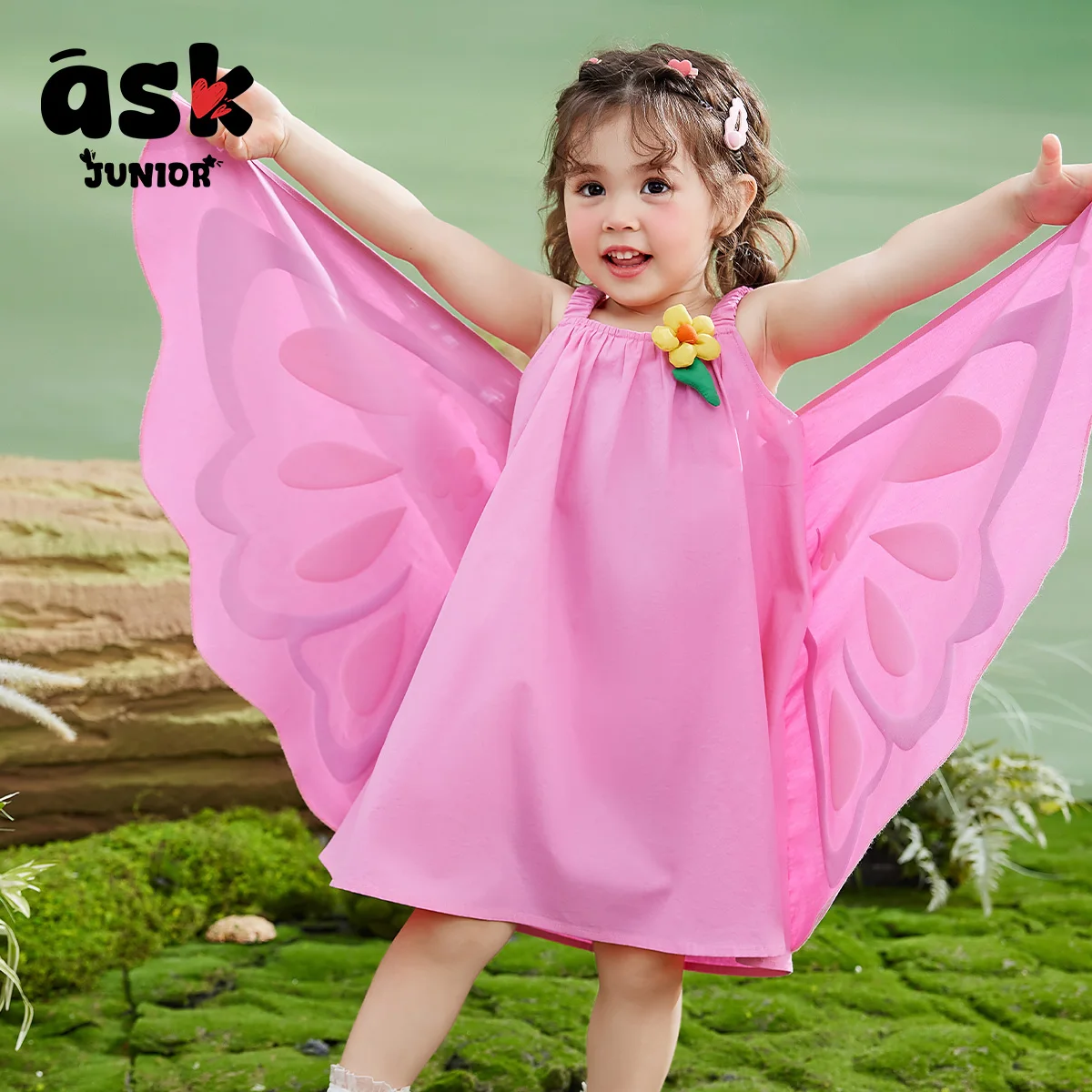 اسأل تنورة الفتيات الصغيرات الصيف الأطفال فستان الحمالة أجنحة الفراشة