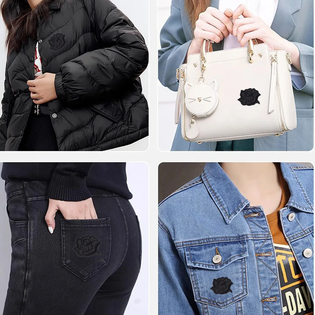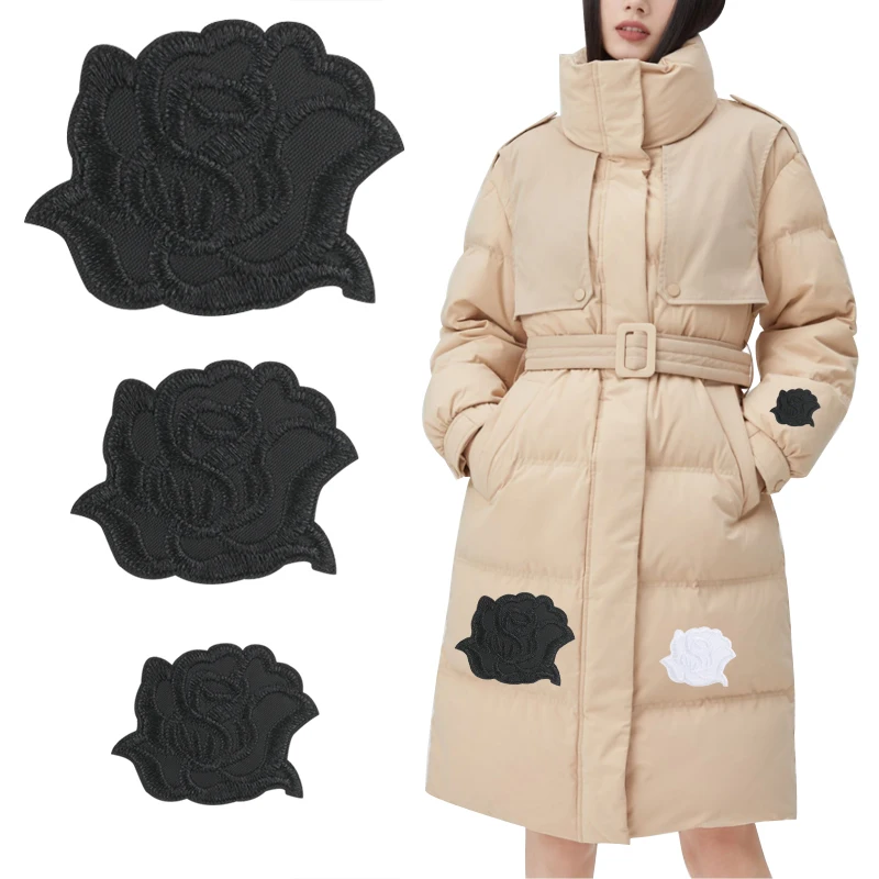 أسود روز زهرة التصحيح النسيج المطرزة الملابس إصلاح ملصقات حقيبة خياطة الحديد على DIY بها بنفسك الخياطة زين الملابس الملابس