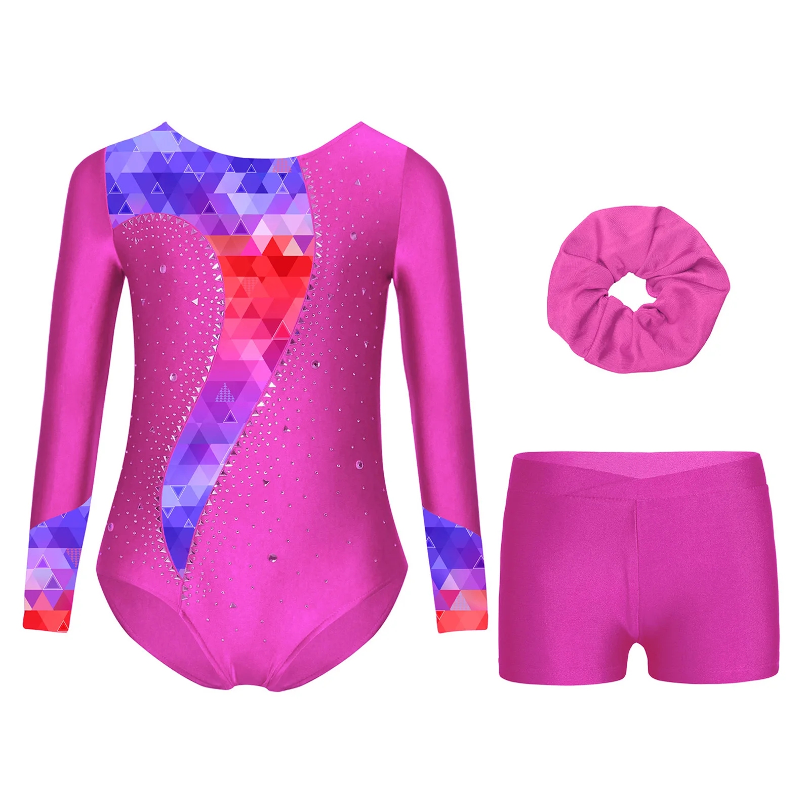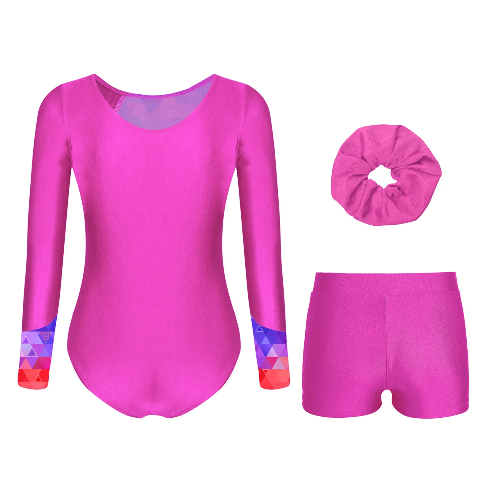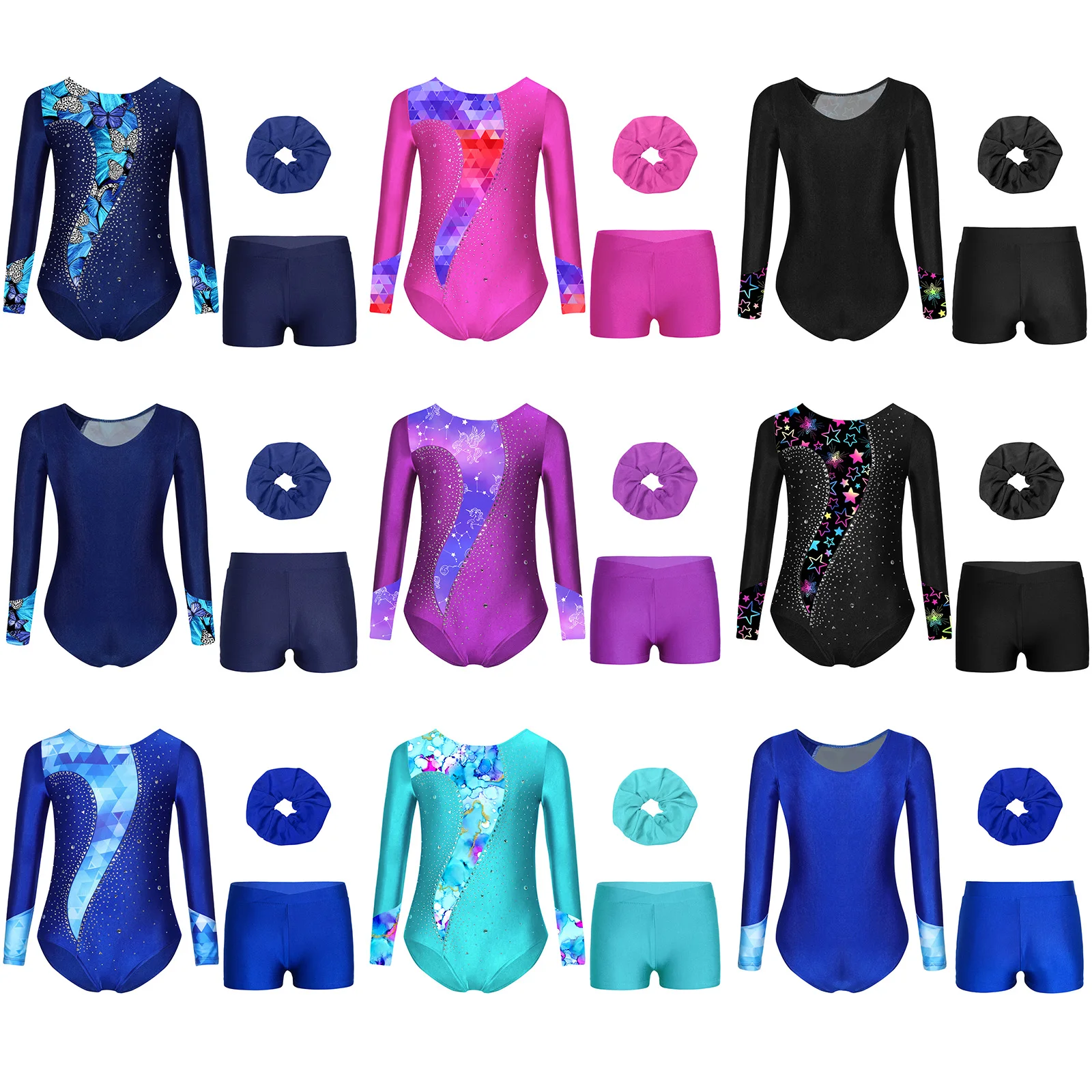 أطفال بنات الباليه الجمباز مجموعات ملابس الرقص الرياضية طويلة الأكمام المطبوعة الراين يوتار مع السراويل وبدلة عقال