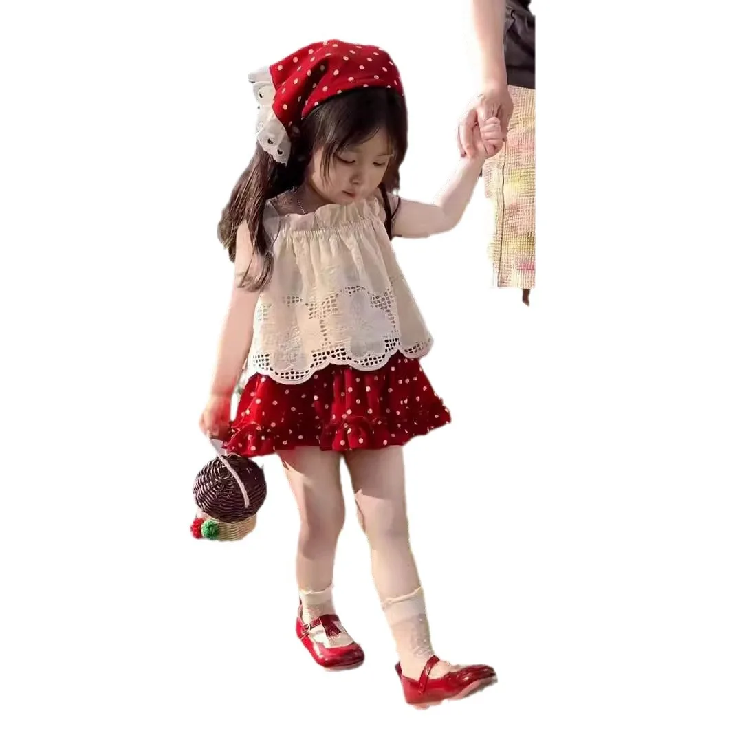 أطقم الأميرة الجميلة للفتيات الصغيرات والأطفال الرضع رباط شعر منقط باللون الأحمر