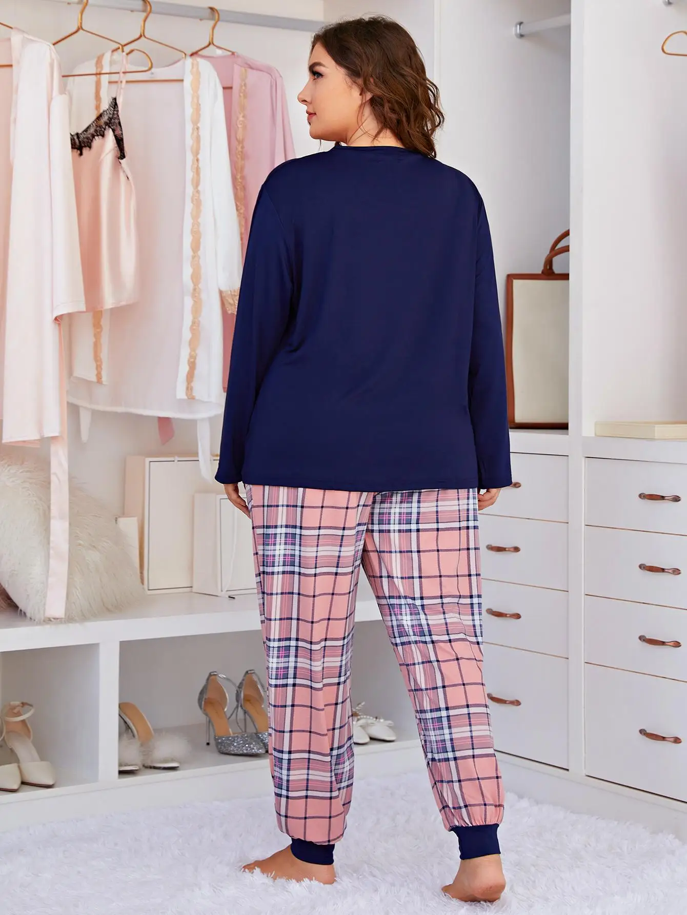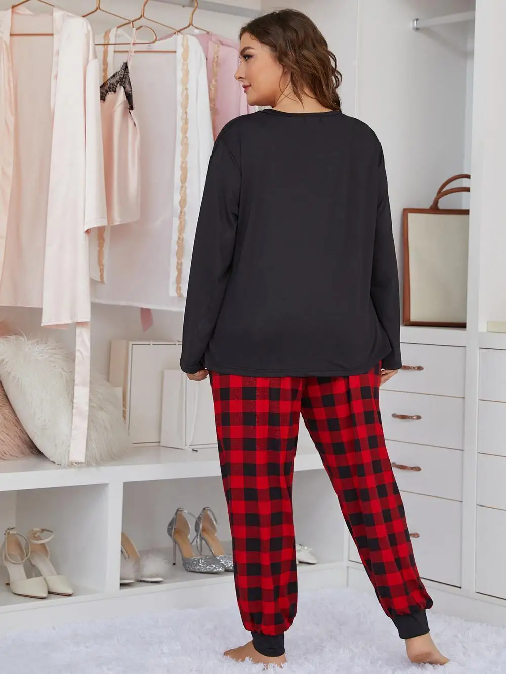 أطقم بيجامات نسائية بطبعة حب من قطعتين ، كبيرة الحجم ، بأكمام طويلة ، ملابس منزلية
