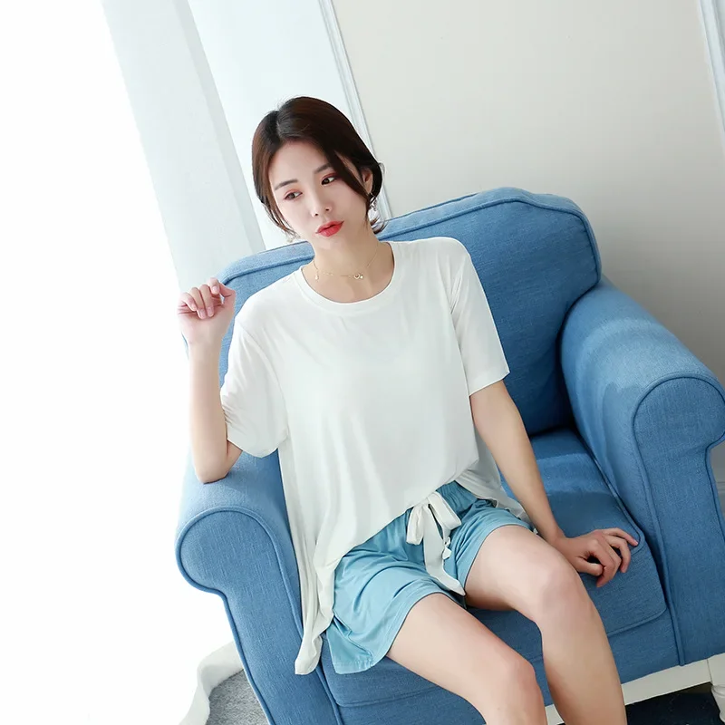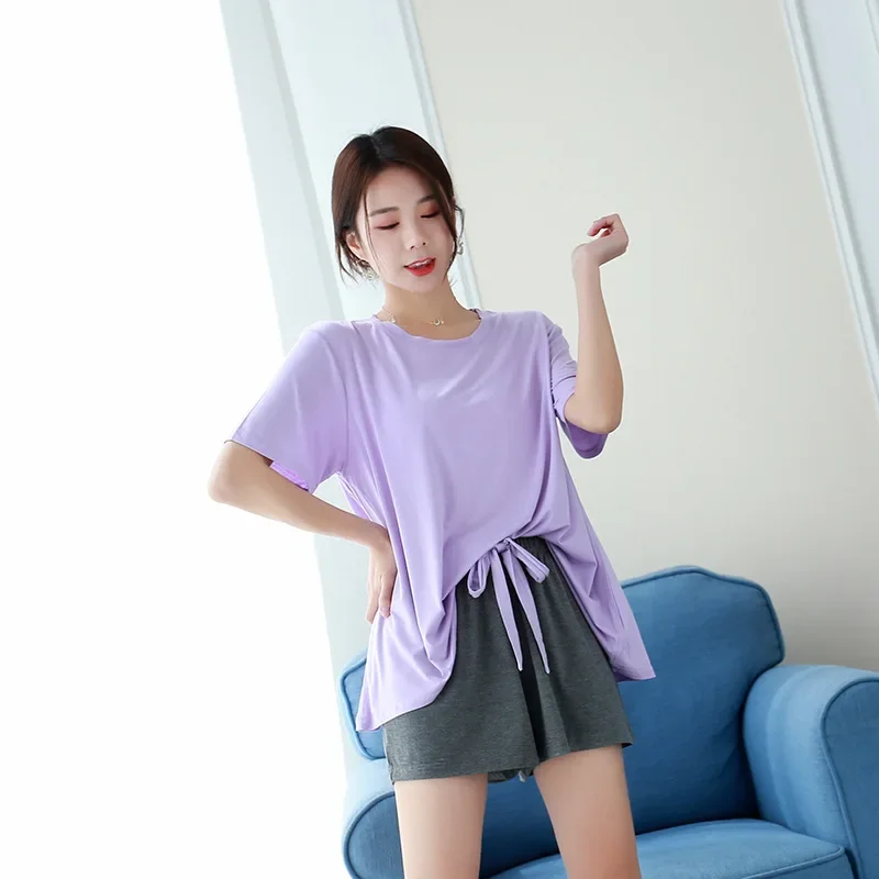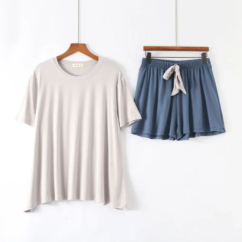 بدلة بيجامات غير رسمية جديدة لصيف 2025 سراويل قصيرة الأكمام مشروط بيجامات نسائية قسم رفيع فضفاضة كبيرة الحجم خدمة منزلية