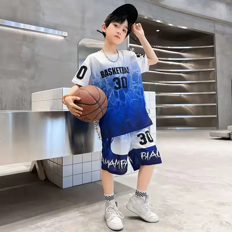بدلة رياضية رائعة جديدة لعام للأولاد زي كرة سلة سريع الجفاف زي صيفي ملابس رياضية أنيقة للأطفال
