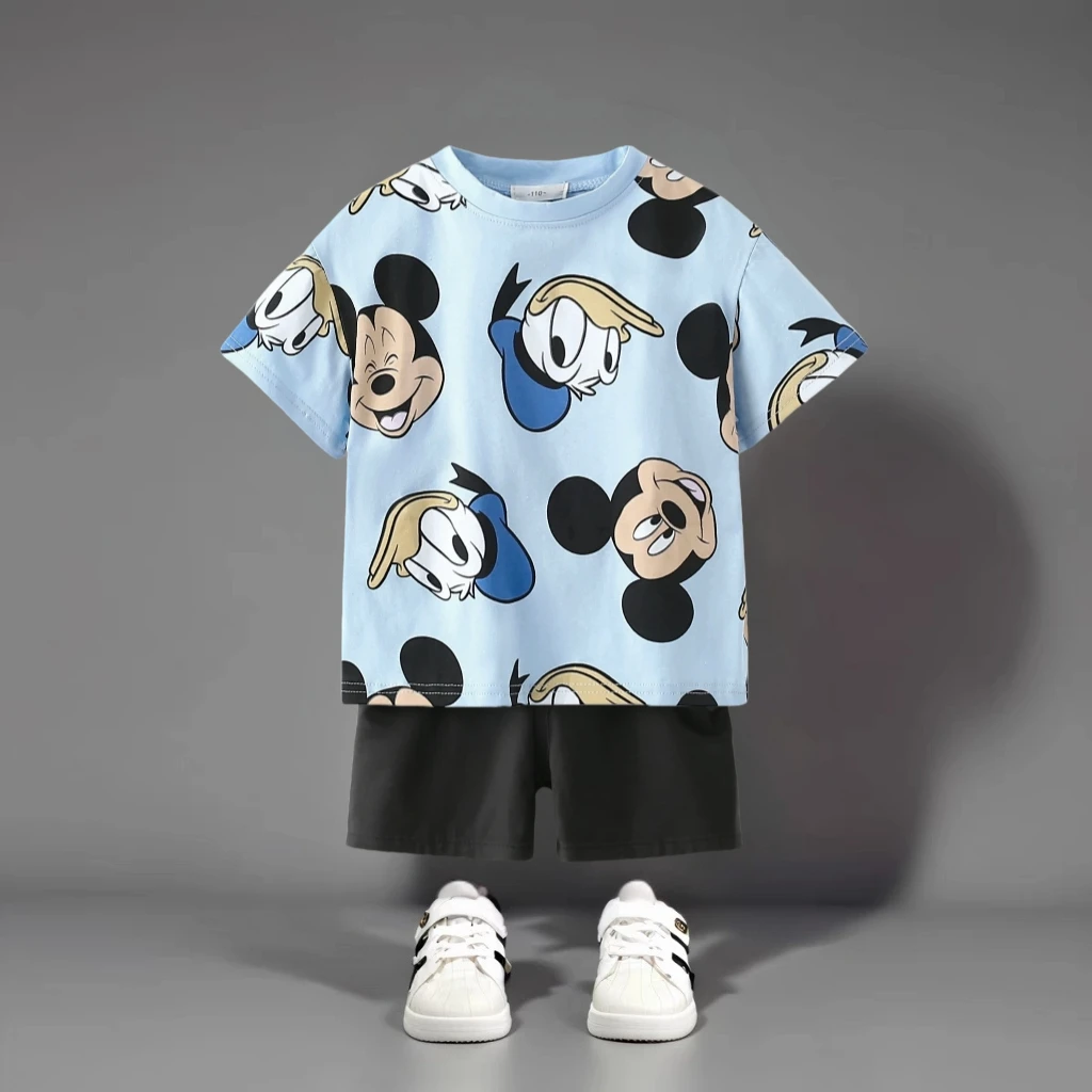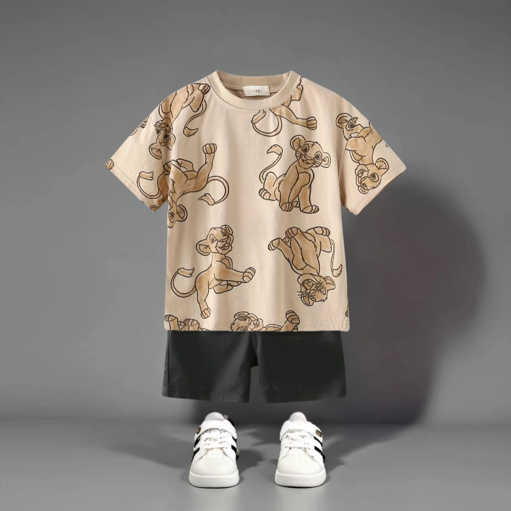 بدلة تي شيرت كارتونية مطبوعة بالكامل ملابس صيفية جديدة نمط الأسد للأولاد ملابس رياضية بأكمام قصيرة ملابس أطفال غير رسمية
