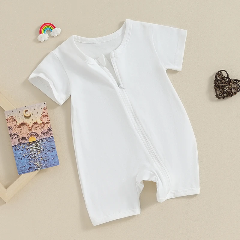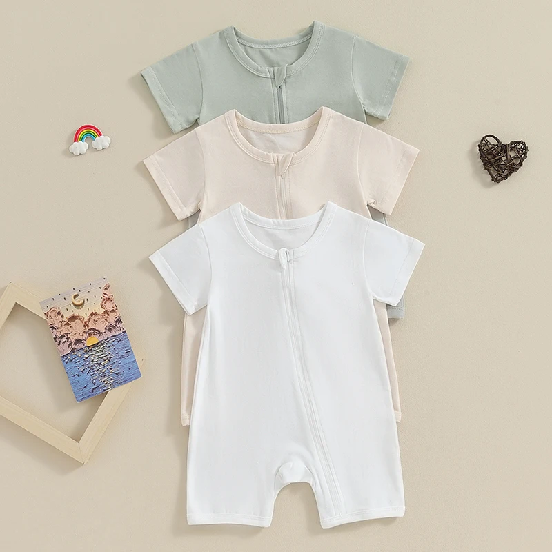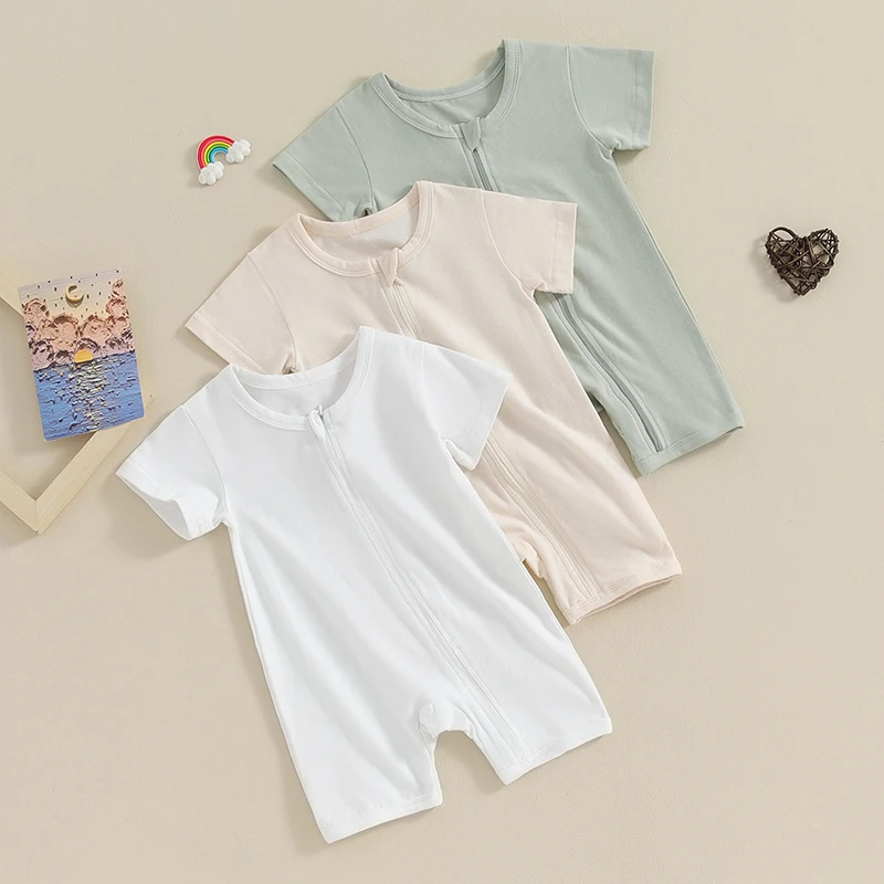 طفل الصيف رومبير عارضة قصيرة الأكمام جولة الرقبة البريدي بذلة ملابس الرضع