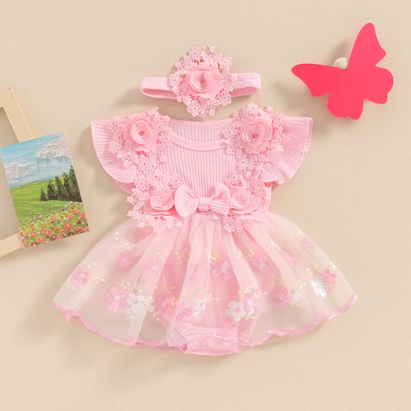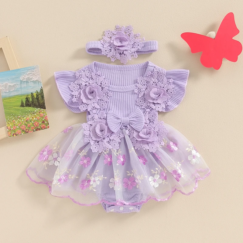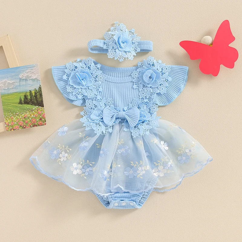 بودكوكو-مجموعة ملابس لحديثي الولادة ، رومبير مطرز بالأزهار ، فستان تول مع عصابة رأس ، من 0 إلى 18 سنة ، 2 ، الصيف
