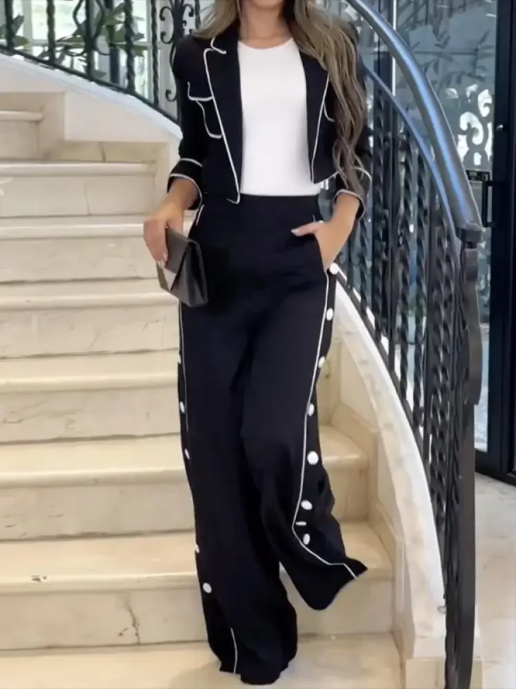 بونبوهو-طقم سراويل نسائية غير رسمية ، معطف وسترة وبنطال بساق واسعة ، بدلة أنيقة من قطعتين للسيدات ، الربيع والصيف ،