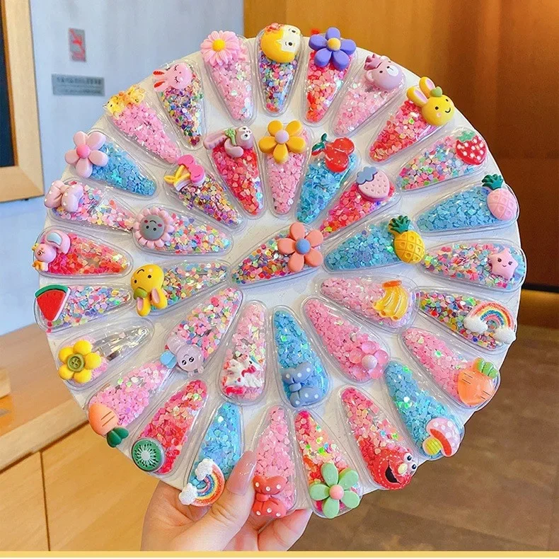 دبابيس شعر كرتونية على شكل زهرة رملية متدفقة على شكل فاكهة للأطفال على طراز الأميرة الصغيرة، مشابك شعر BB لطيفة، إكسسوارات عصرية للأطفال
