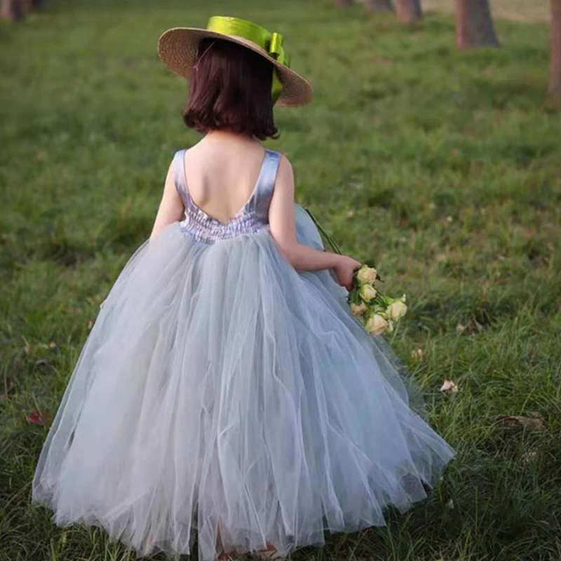 فساتين ل تول الأقمشة فستان الحفلات الأطفال الدانتيل الحدث طويل حفلة موسيقية فساتين الزفاف