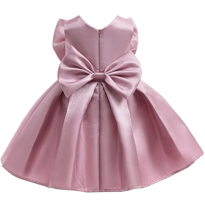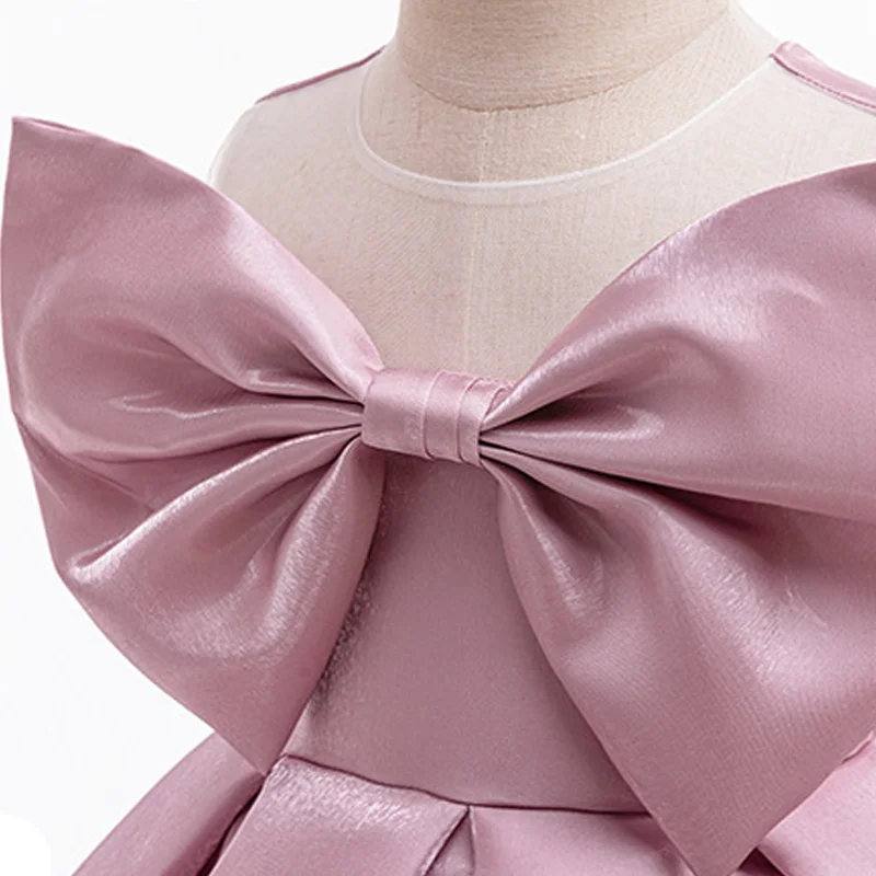 فستان الأميرة للأطفال الصغار في السنة الأولى بدون أكمام بفيونكة كبيرة للفتيات المعمودية والولائم الرسمية وأعياد الميلاد والحفلات