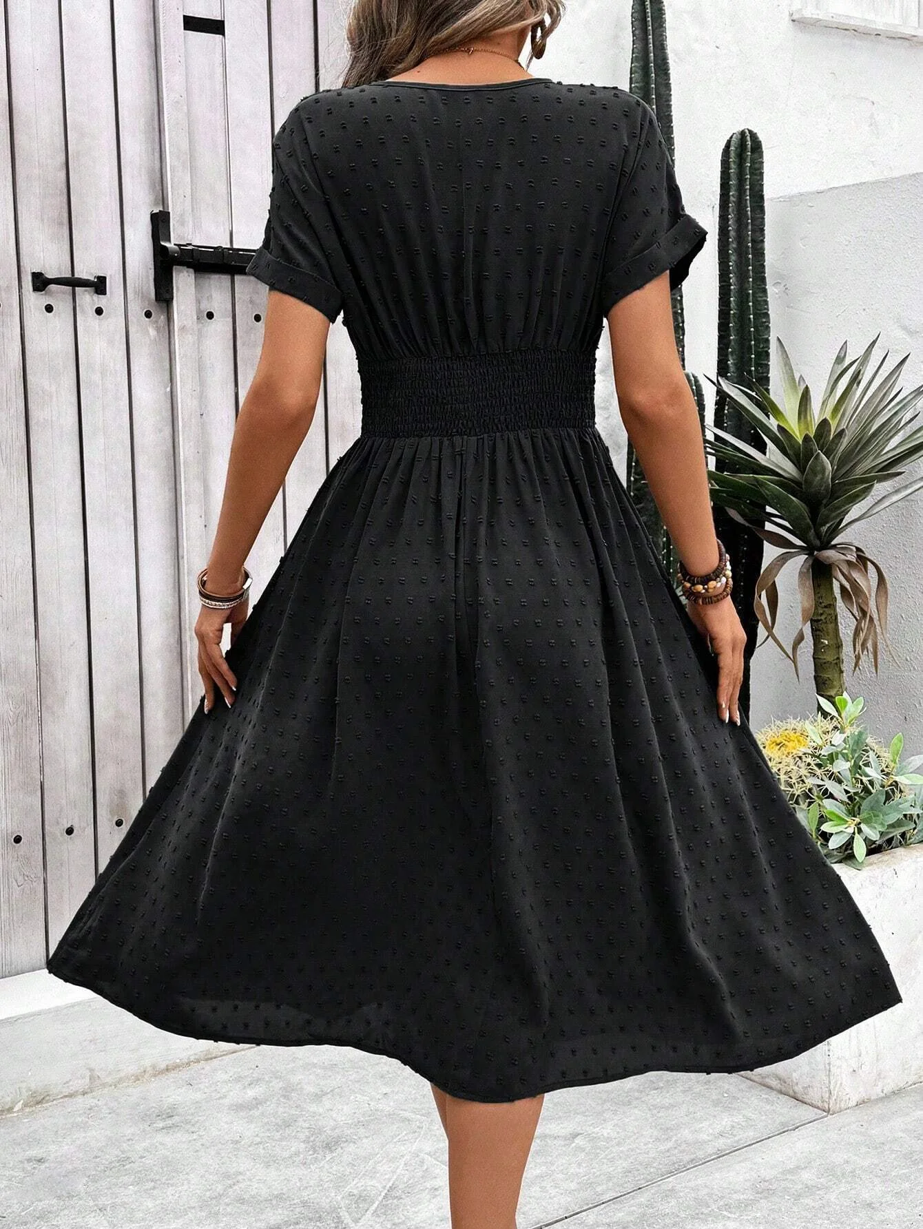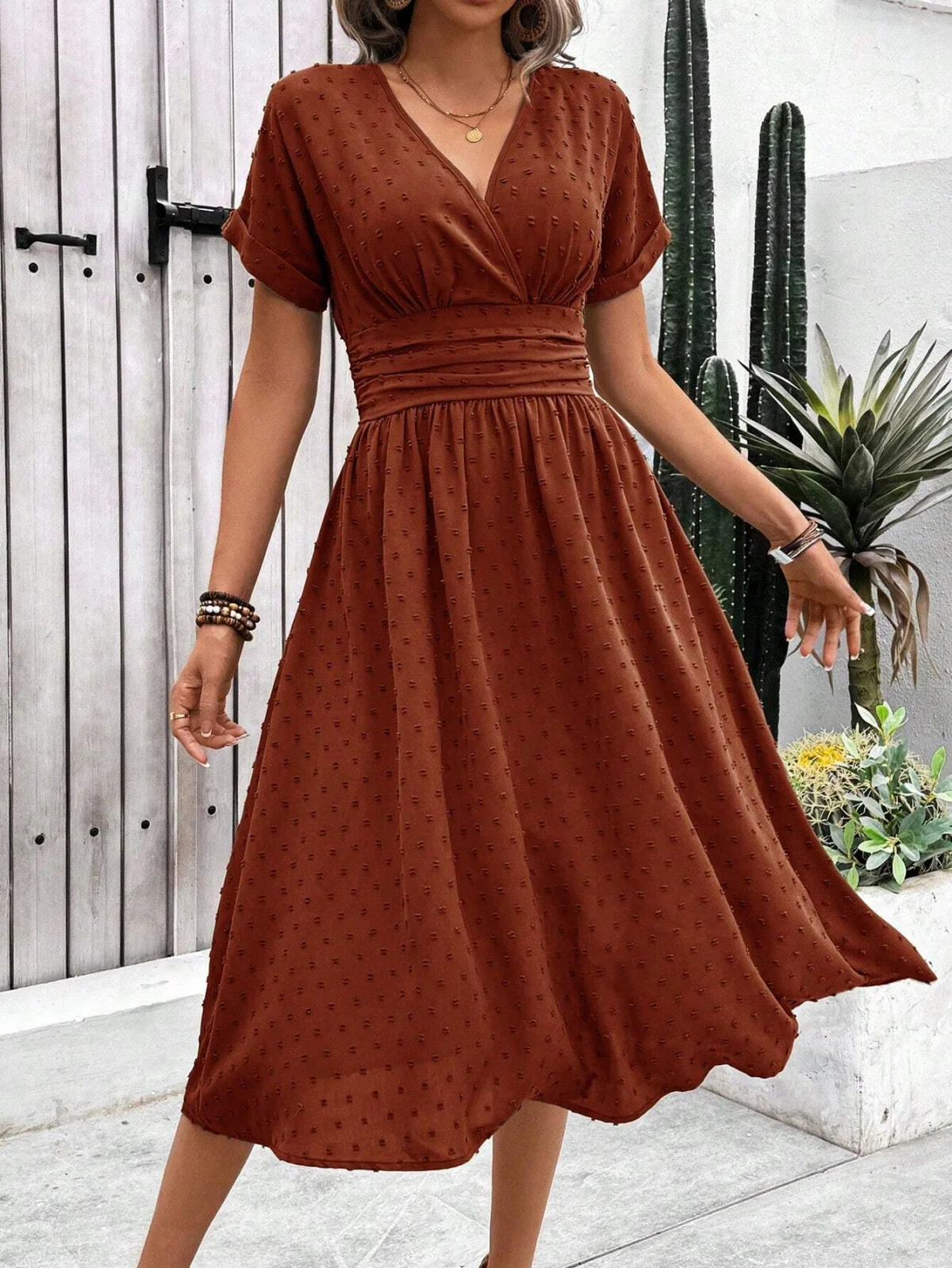 فستان أنيق متوسط الحجم برقبة على شكل حرف V، فستان نسائي طويل عصري