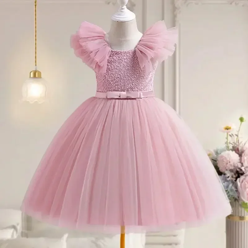 فستان إشبينة العروس مع كشكشة والدانتيل للفتيات من عمر 3 إلى 8 سنوات ، فستان الأميرة لحفل الزفاف وعيد الميلاد ، جديد ،