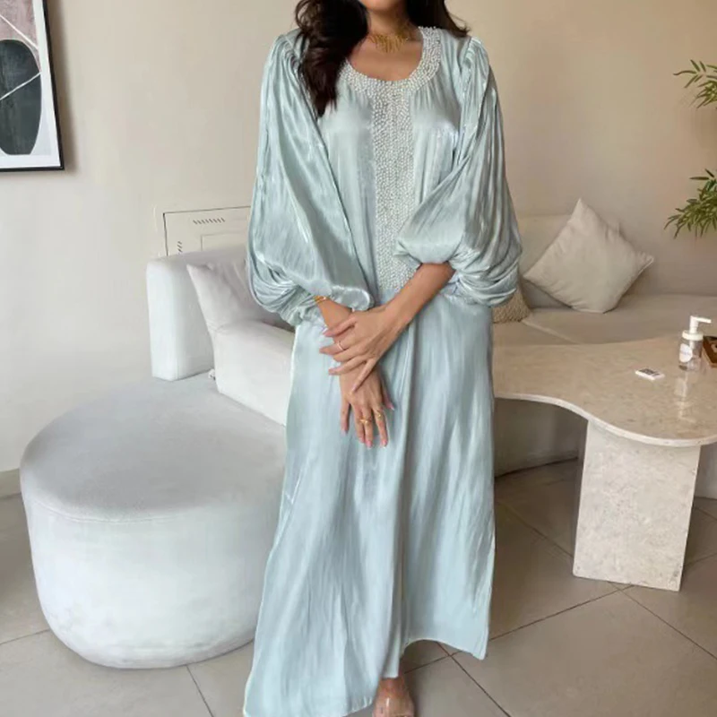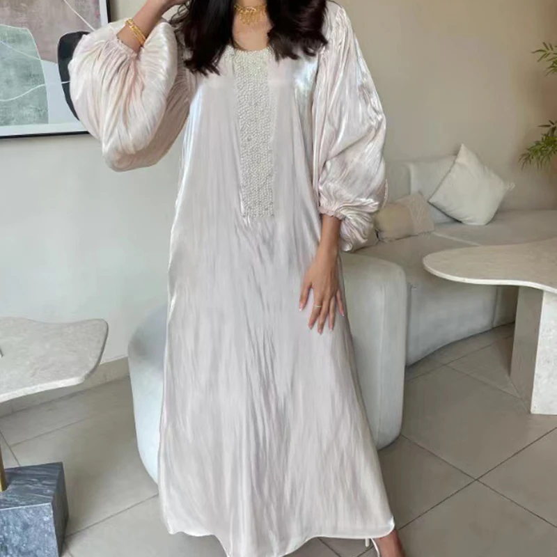 فستان فضفاض بأكمام واسعة برقبة دائرية ، فستان شاطئ غير رسمي ، لون سادة أنيق ، ربط مطرز بالخرز ، فساتين بلوفر ، عطلة ، صيف ،