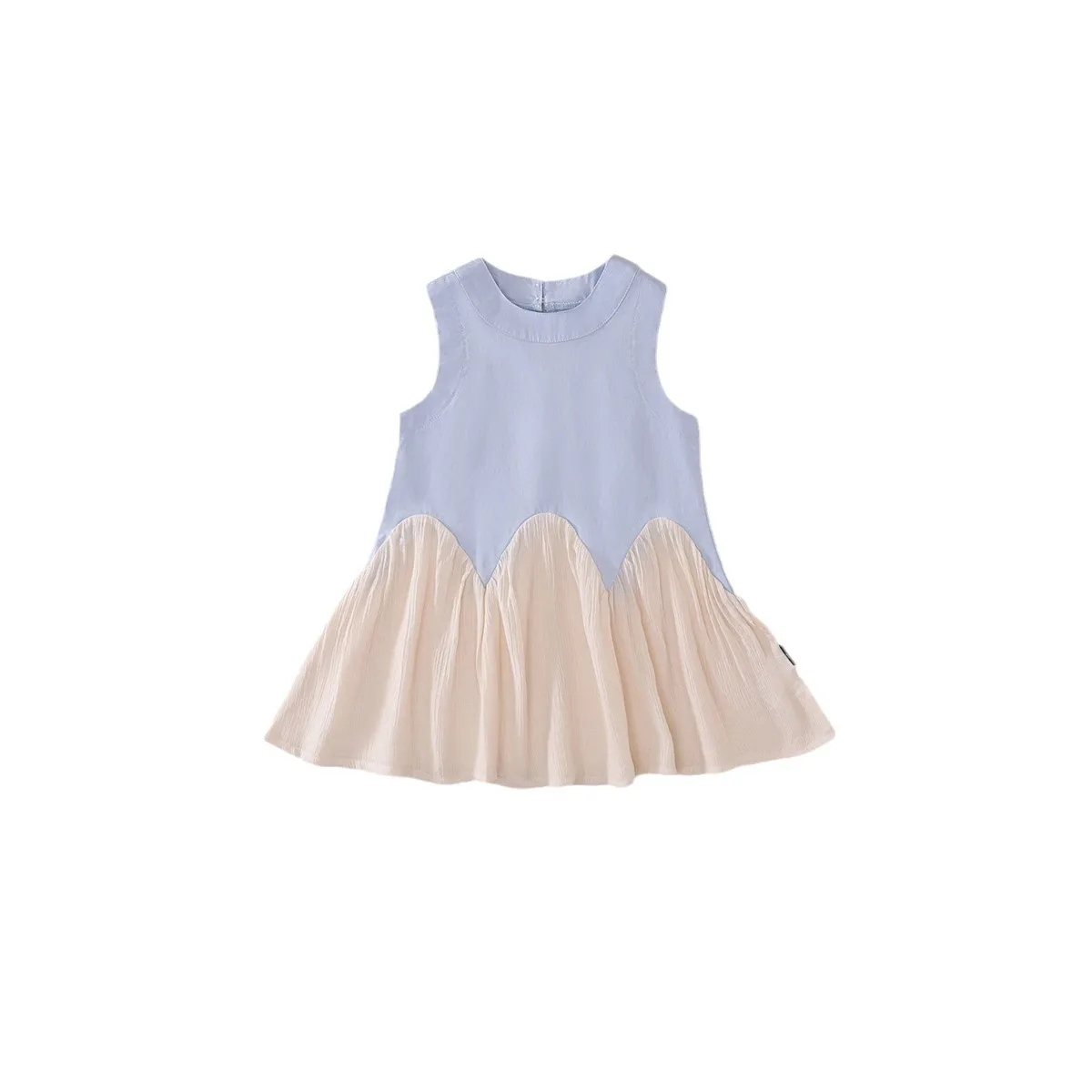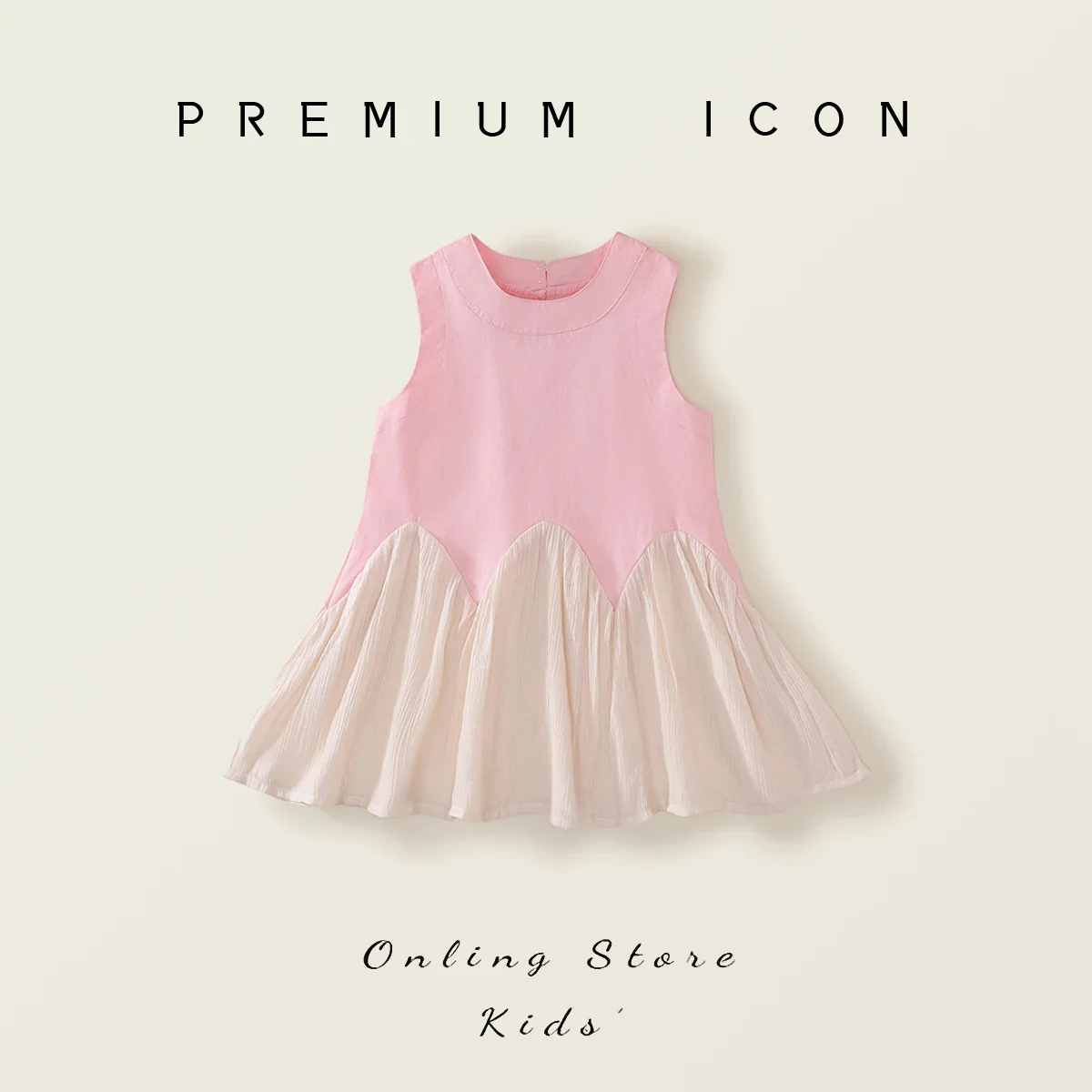 فستان كوري للفتيات الصغيرات بدون أكمام فستان صيفي بياقة مستديرة للأطفال الرضع فستان الأميرة فضفاض بحاشية مكشكشة فستان بناتي للأطفال