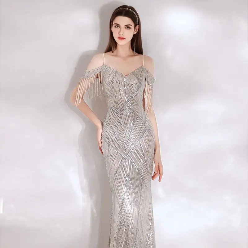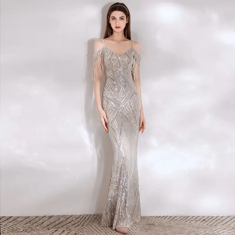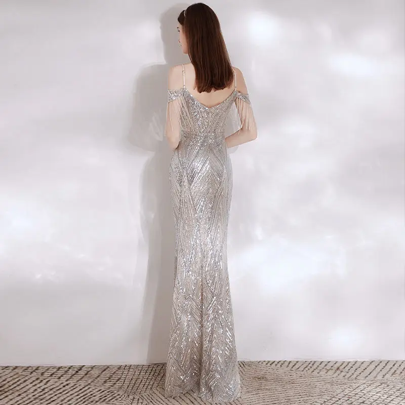 فستان رسمي جديد من Partykleider برقبة على شكل V للحفلات الراقصة أنيق ماكسي ترتر أداء فيستدو لونغو فستان سهرة فاخر للنساء