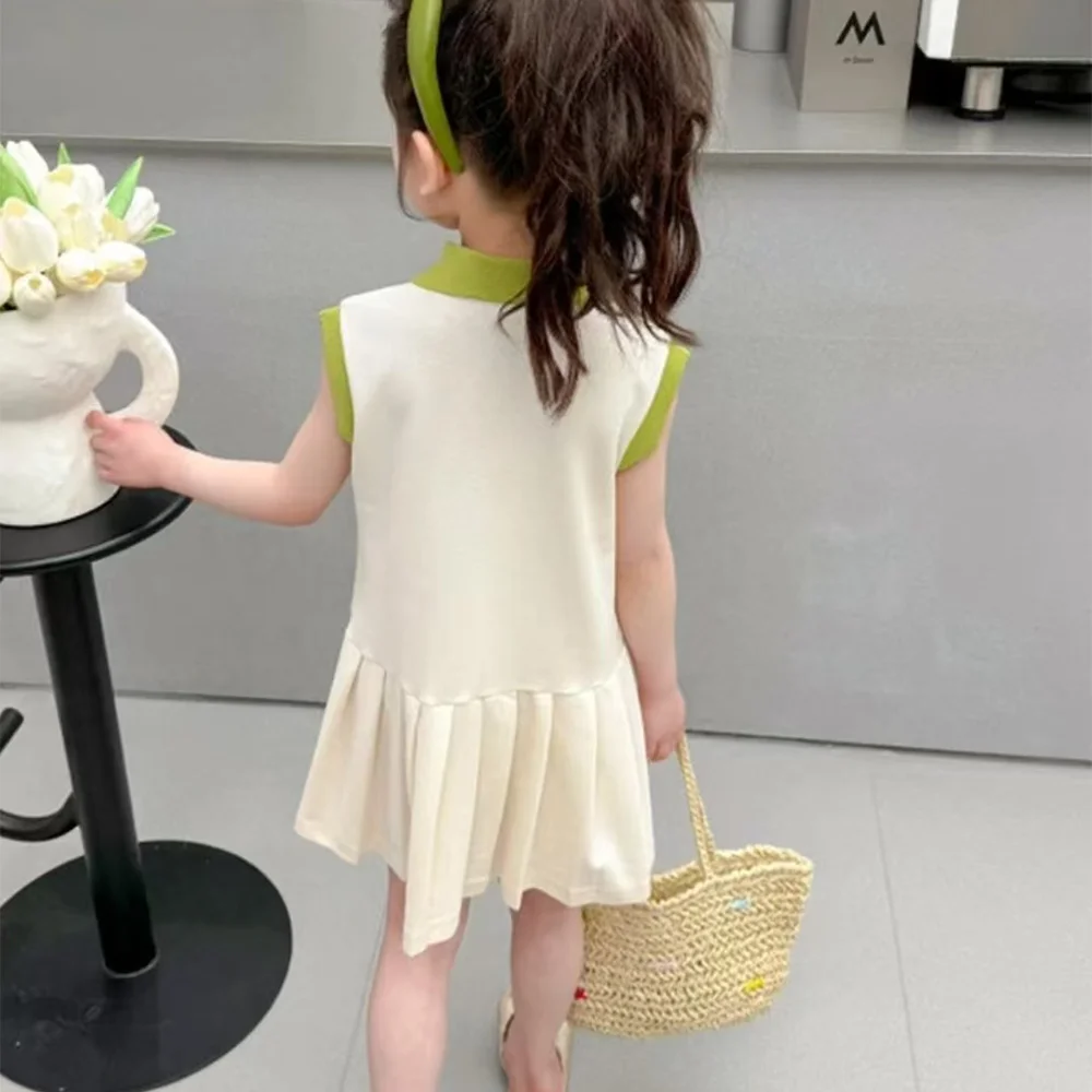 فتاة لطيف اللباس الحب القلب المطرزة فساتين بولو الرقبة أكمام مطوي تنورة فستان الأميرة أزياء مريحة ملابس أطفال
