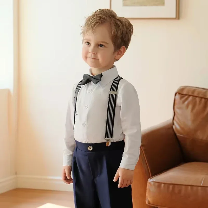 جديد الأبيض وسيم الأولاد الدعاوى لحفلات الزفاف مجموعات جوقة المدرسة أداء وتتسابق 3 4 6 Y الأطفال الحمالات فستان أطفال مع سروال داخلي الصيف