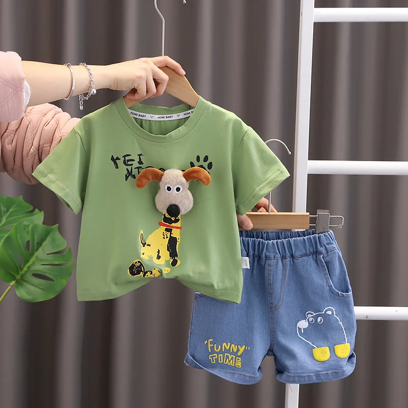 جديد الأطفال الصيف الاطفال الفتيان الملابس الكرتون القطن تي شيرت السراويل 2 قطعة/مجموعة الرضع موضة عادية طفل رياضية 0-5 سنوات