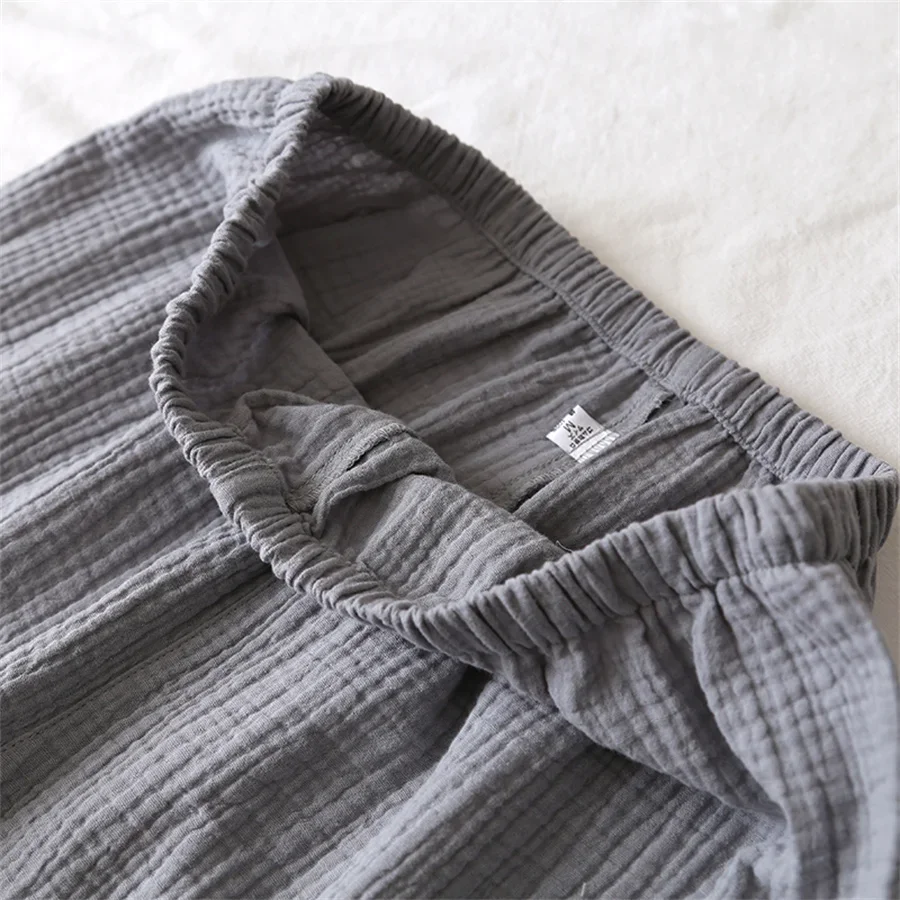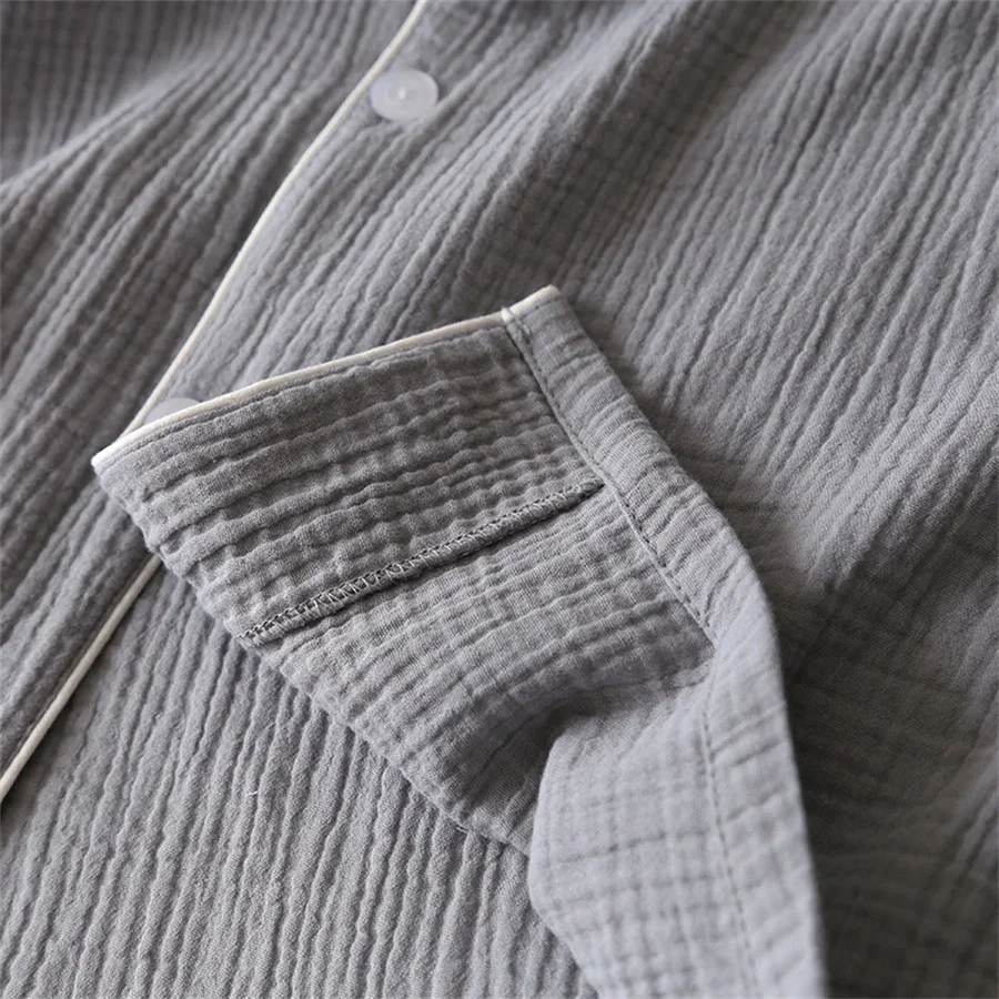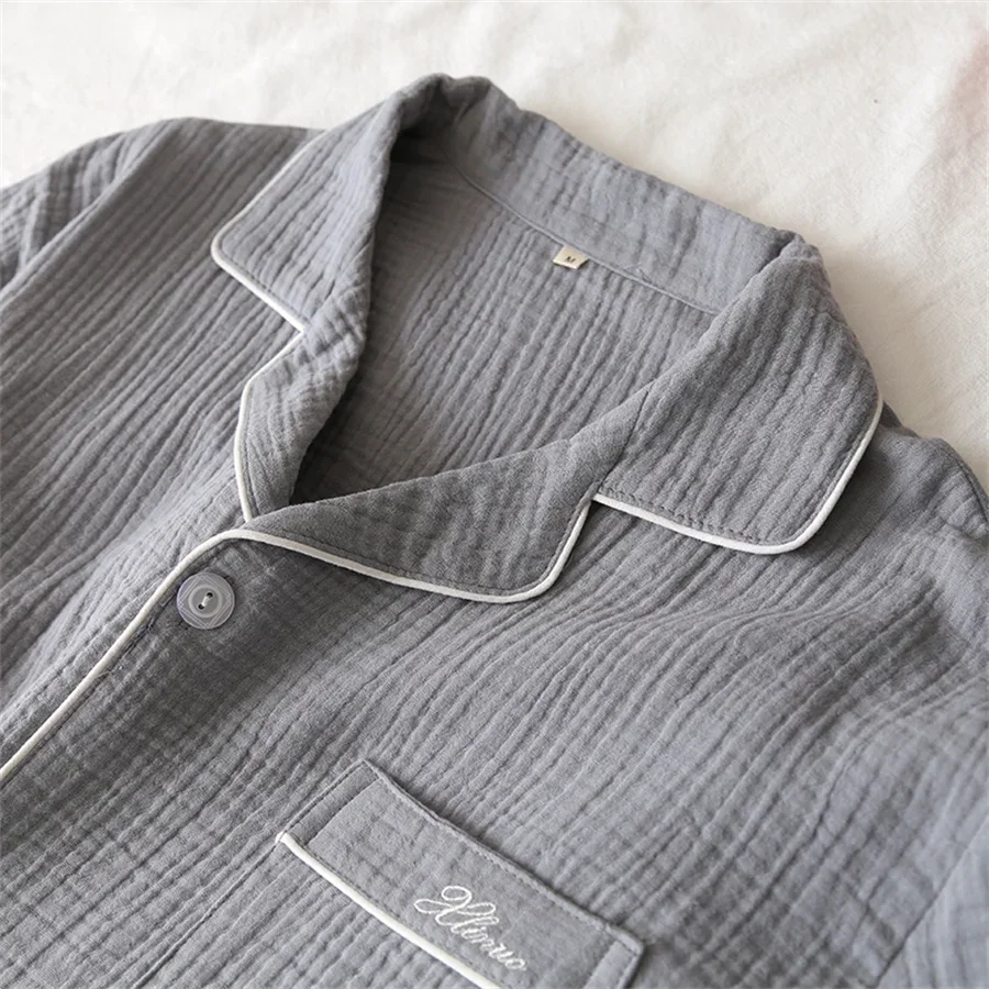 جديد صيف بدلة بيجامات رجالية من القطن كريب شاش بلون سادة بسيط بأكمام قصيرة قميص شورت ملابس نوم ملابس تنحيف للرجال