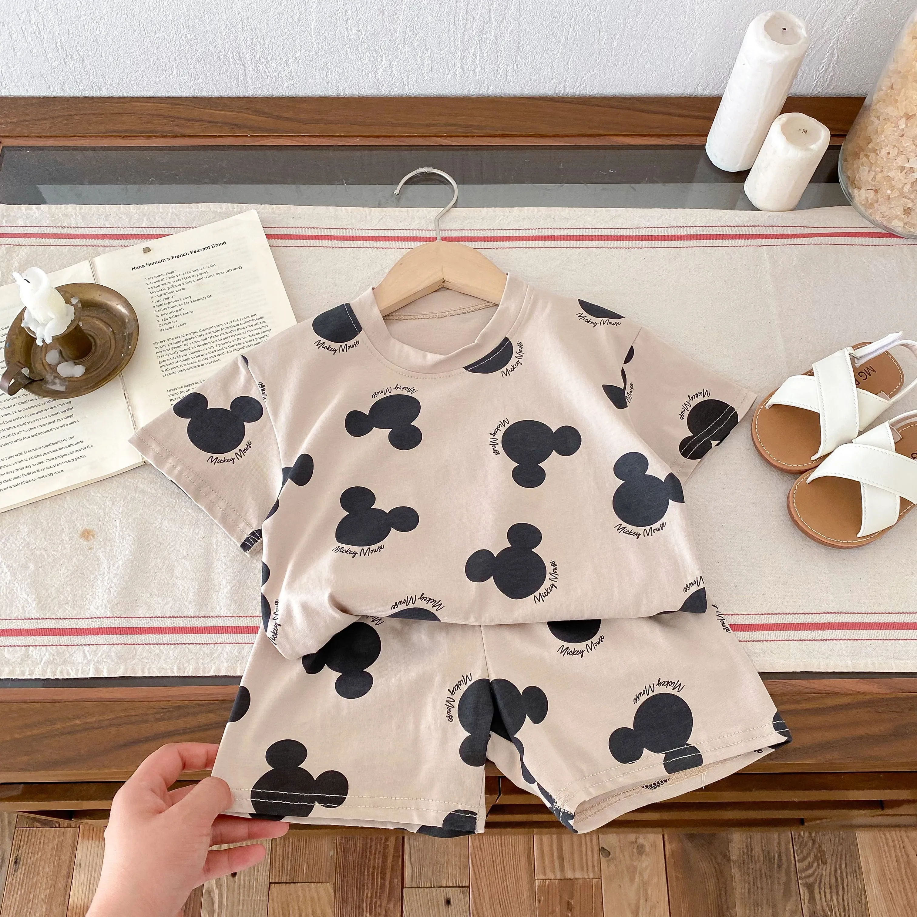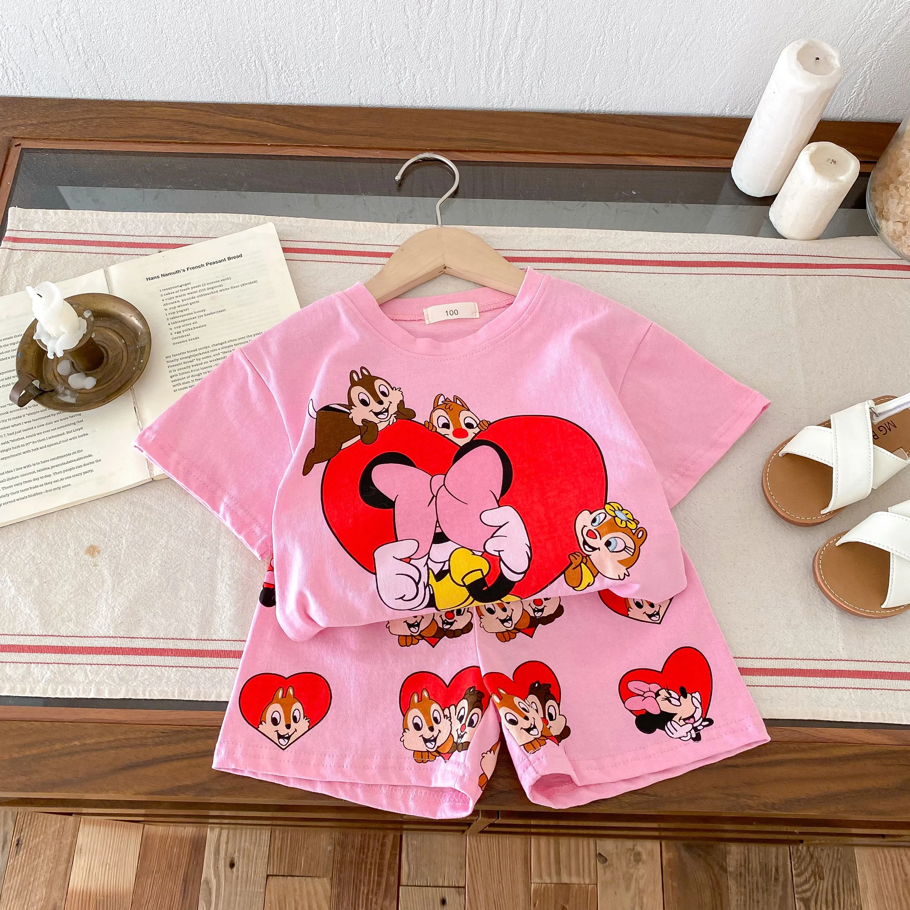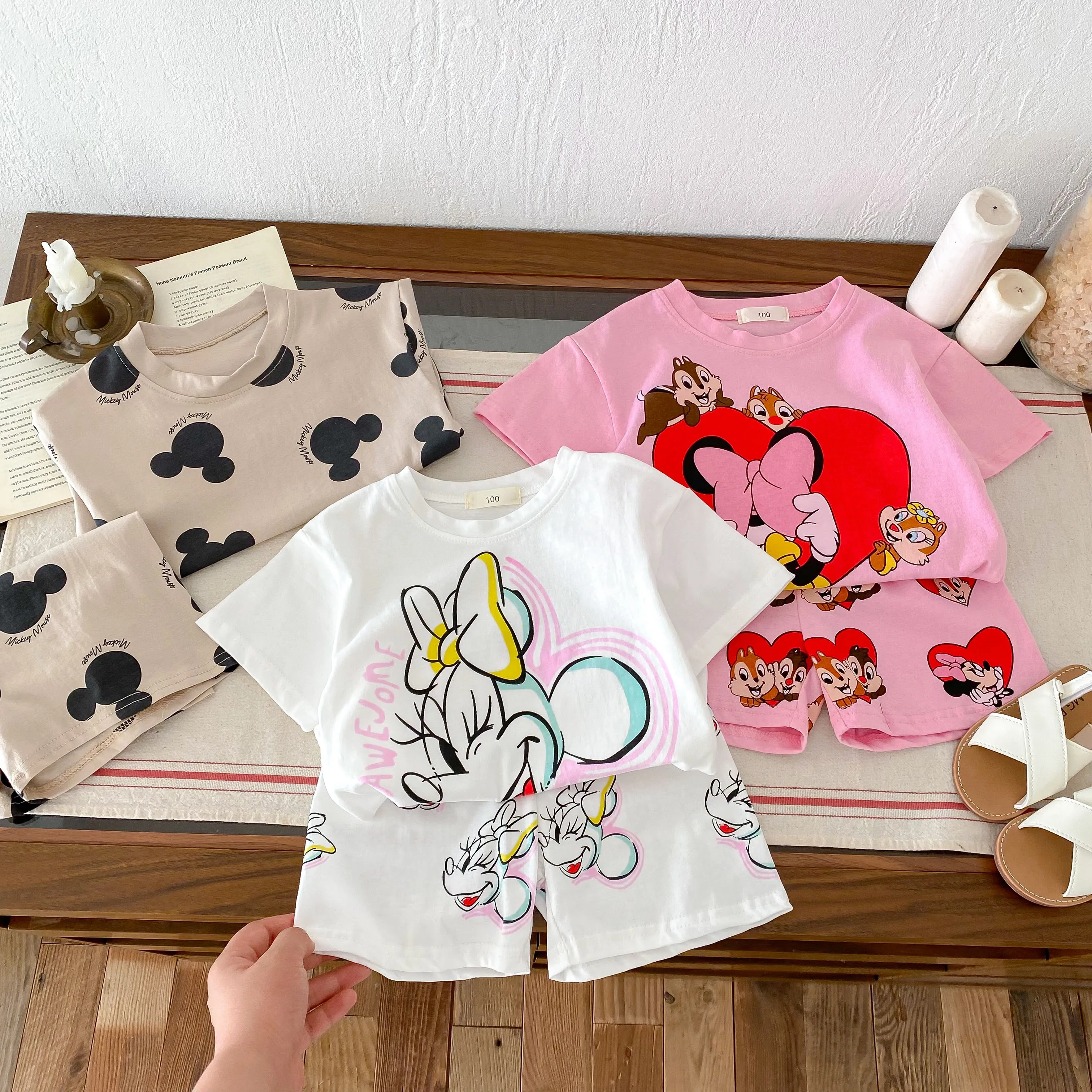 جميل ميني ماوس الفتيات تي شيرت مجموعة شعبية العلامة التجارية ملابس أطفال دعوى الصيف الكرتون قصيرة الأكمام السراويل وتتسابق ملابس الاطفال