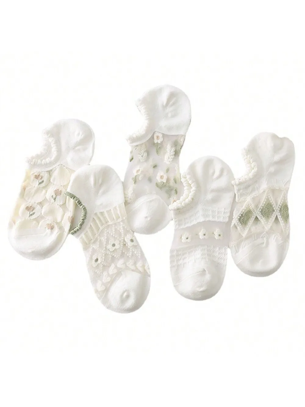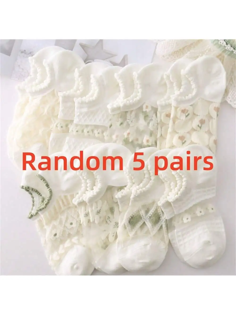 جوارب حريرية كريستالية رفيعة للغاية بشكل عشوائي للنساء ، جوارب قصيرة مجوفة قابلة للتنفس ، 5 أزواج ، الصيف