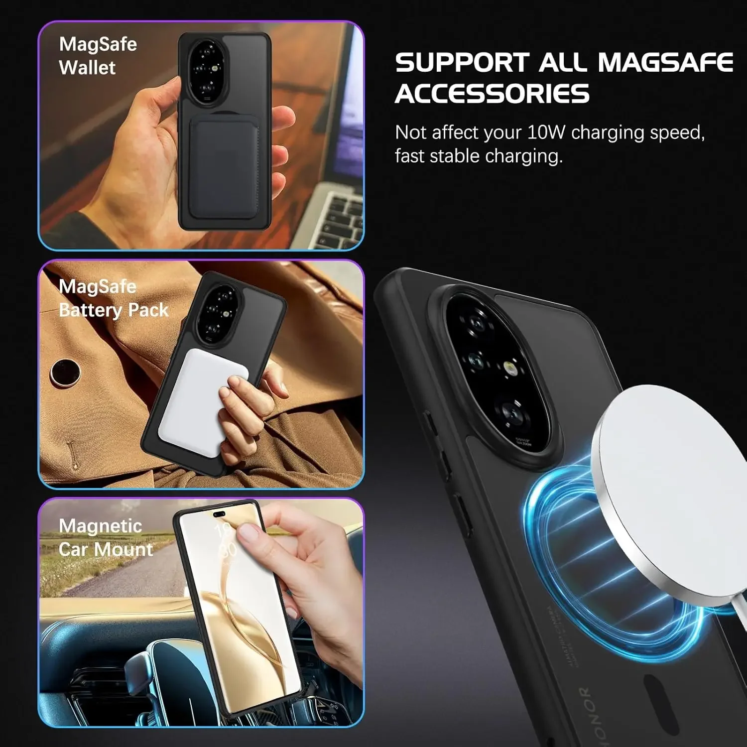 حافظة شفافة لهاتف Magsafe المغناطيسي اللاسلكي للشحن الخلفي غير اللامع من البلاستيك الصلب غطاء ممتص للصدمات ناعم لهاتف Honor 200 200Pro