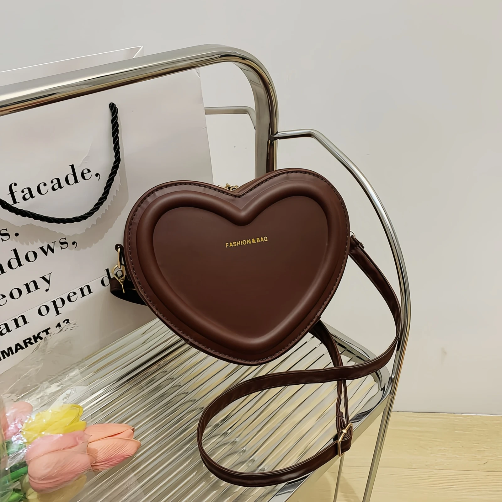 حار بيع القلب حقيبة كروسبودي المرأة بلون بو الجلود تنوعا الحلو حقيبة الكتف حقيبة يد الموضة تان