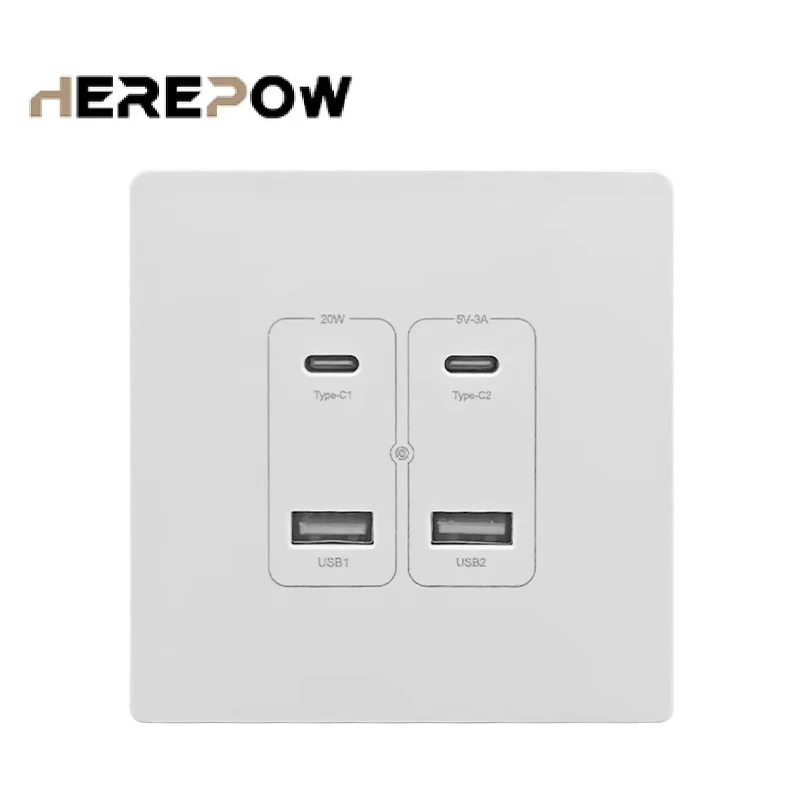 Herepow مقبس الطاقة الجداري مع المزدوج USB Typec أربعة منافذ شحن سريع واجهة 20 واط 3A 220 فولت الأجهزة المنزلية الذكية محول القابس