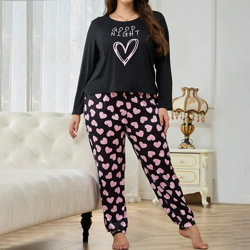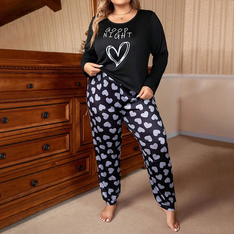 حجم كبير 5XL المتضخم ملابس خاصة الجولة الرقبة بلوزات منامة للنساء طويلة الأكمام بنطلون مجموعة منامة المتسكعون الخريف