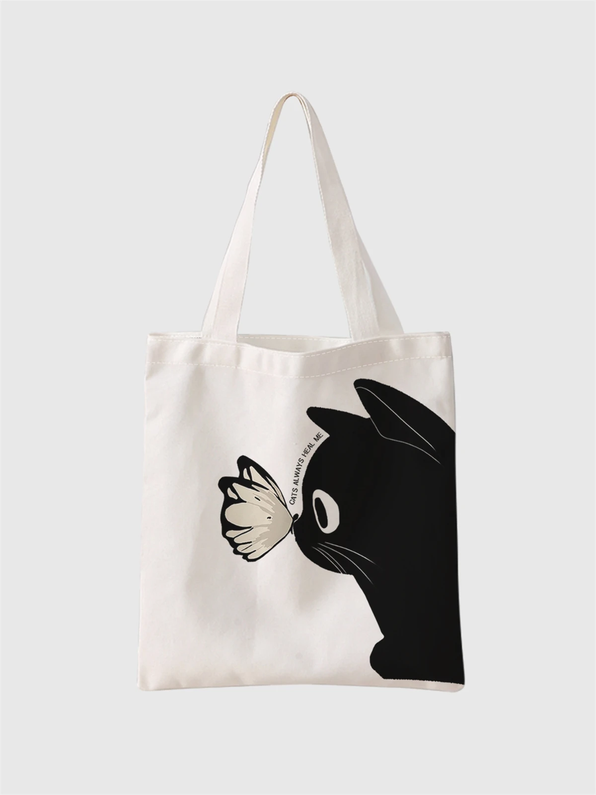 حقيبة تسوق كاجوال بنمط قطة كرتونية، حقيبة ظهر عصرية قابلة لإعادة الاستخدام، حقيبة يد متعددة الوظائف، حقيبة تسوق قماشية