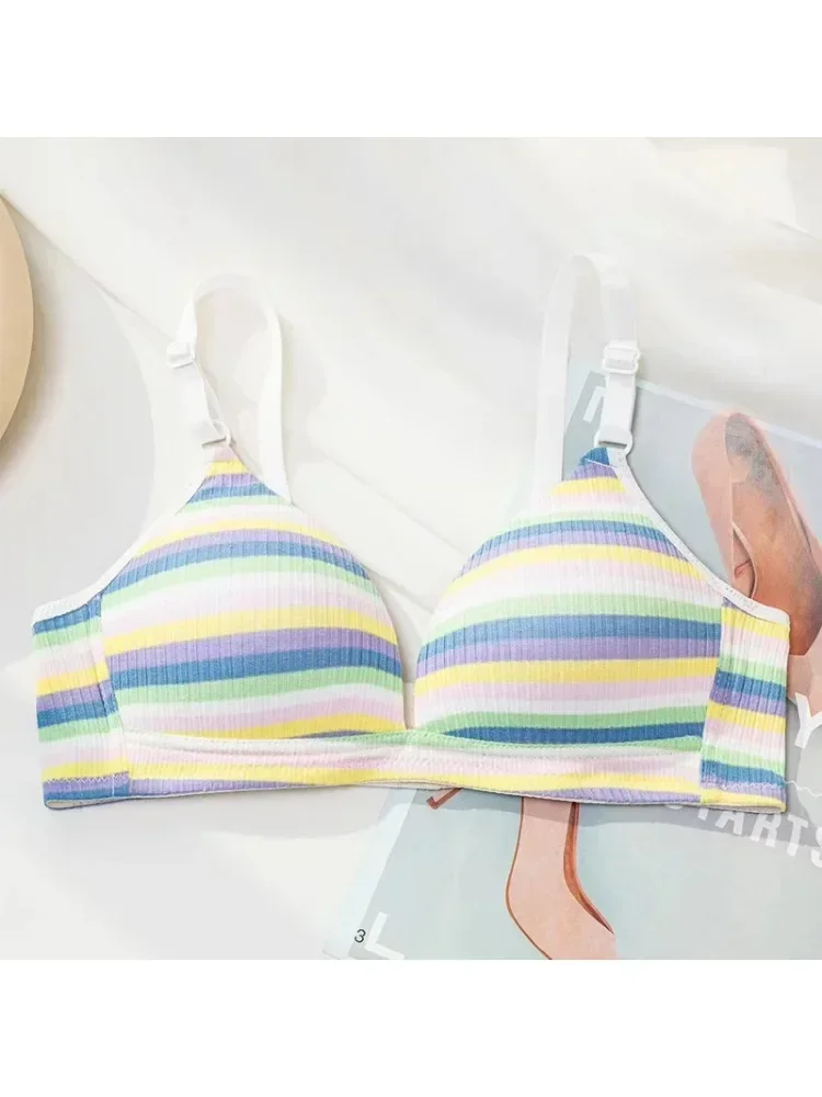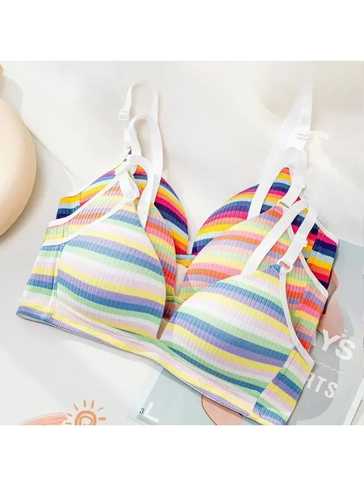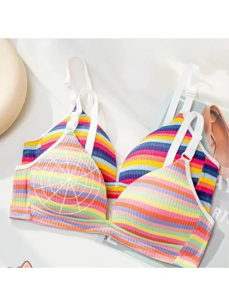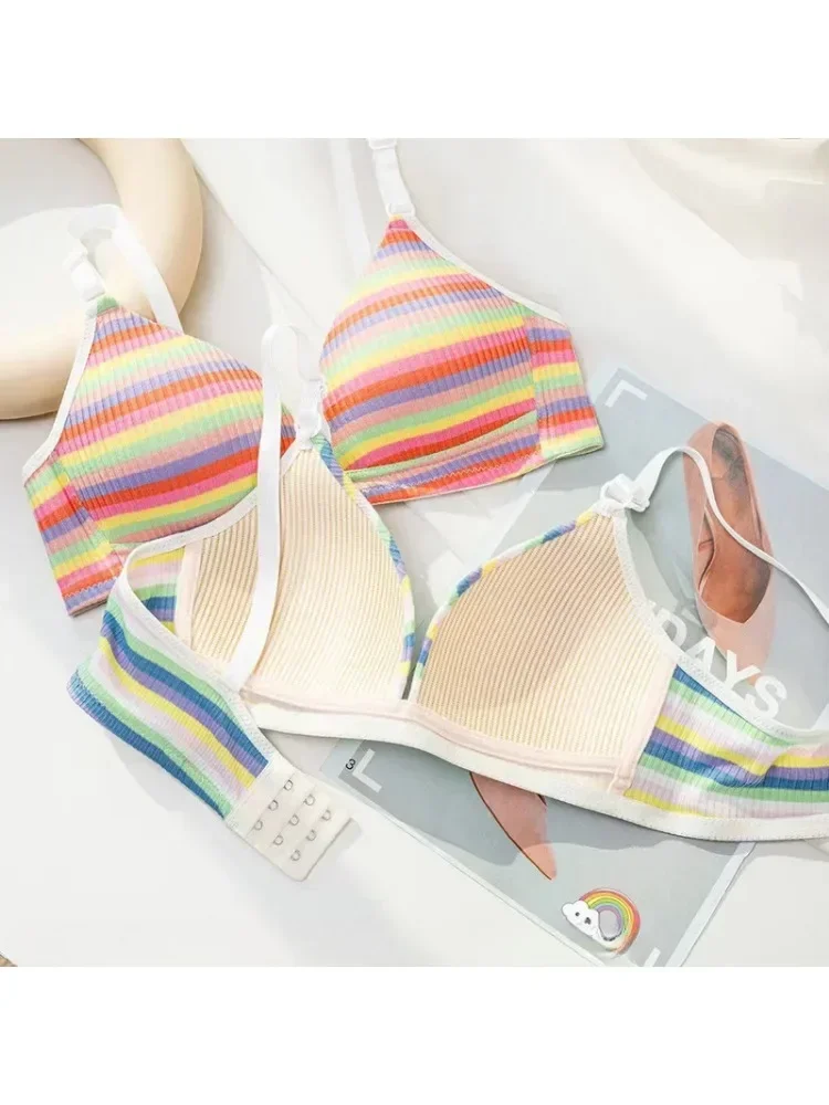 حمالة صدر YUQI Dopamine بألوان قوس قزح مخططة - حمالة صدر مثيرة قابلة للتعديل للصدر الصغير، ملابس داخلية خفيفة الوزن بتصميم متقاطع من الخلف