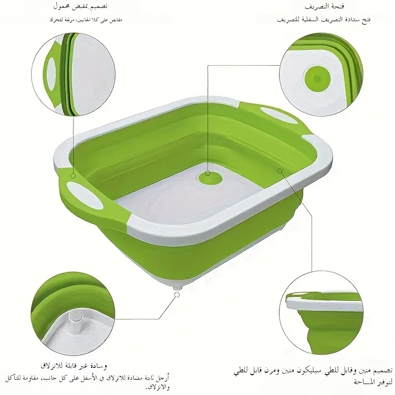 حوض محمول لتوفير المساحة مع وظيفة الحوض المدمج والتخزين - مثالي للتخييم في الهواء الطلق والسفر وحوض المنزل القابل للطي