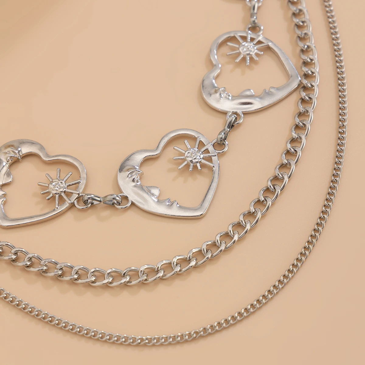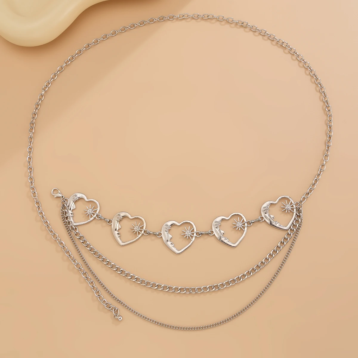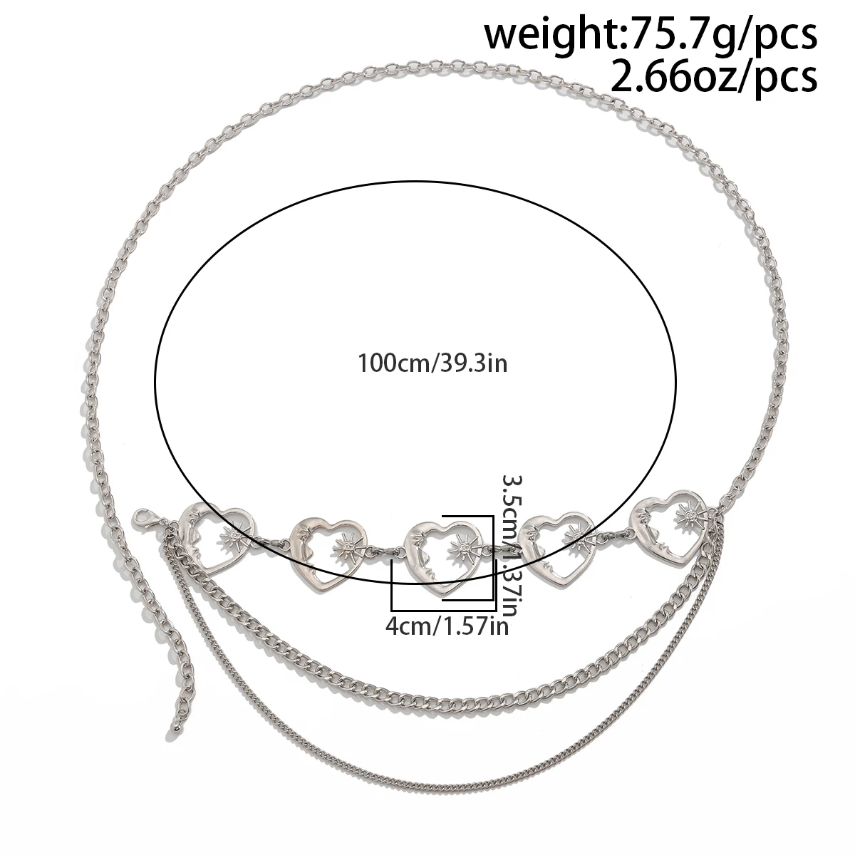 حزام قابل للتعديل للنساء ، سلسلة معدنية متعددة الطبقات ، سلسلة خصر البطن ، حزام تنورة هيب هوب ، قلب حب ، إكسسوارات Y2K ، موضة