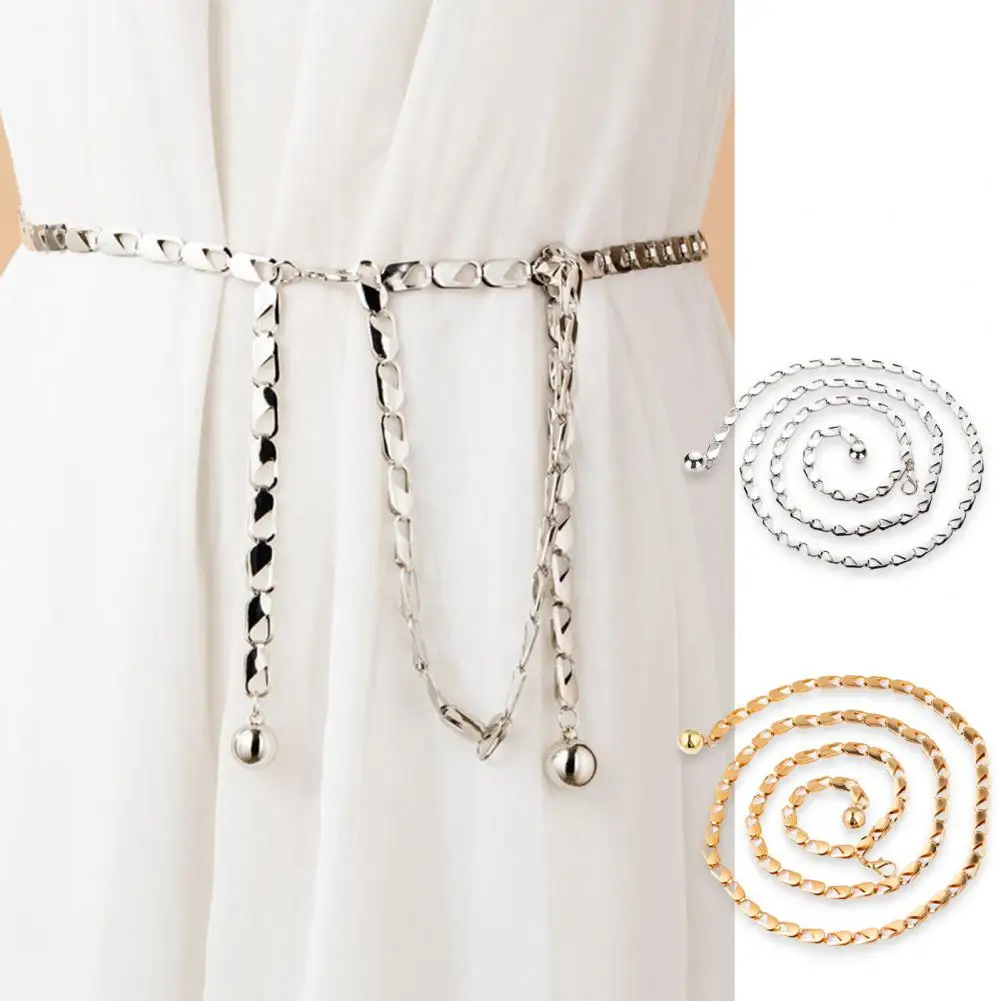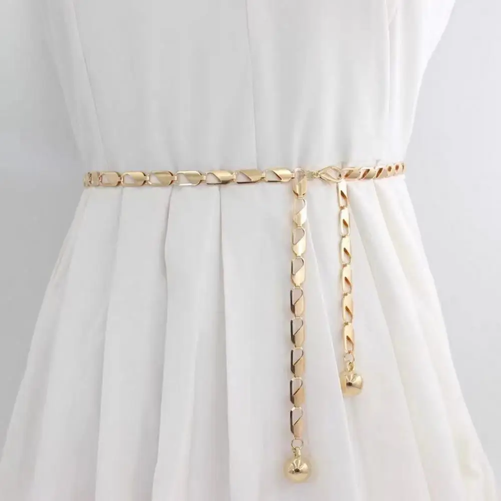 حزام معدني قابل للتعديل حزام سلسلة هندسي أنيق للنساء حزام خصر قابل للتعديل مع سلاسل ذهبية رقيقة متعددة الاستخدامات للصيف
