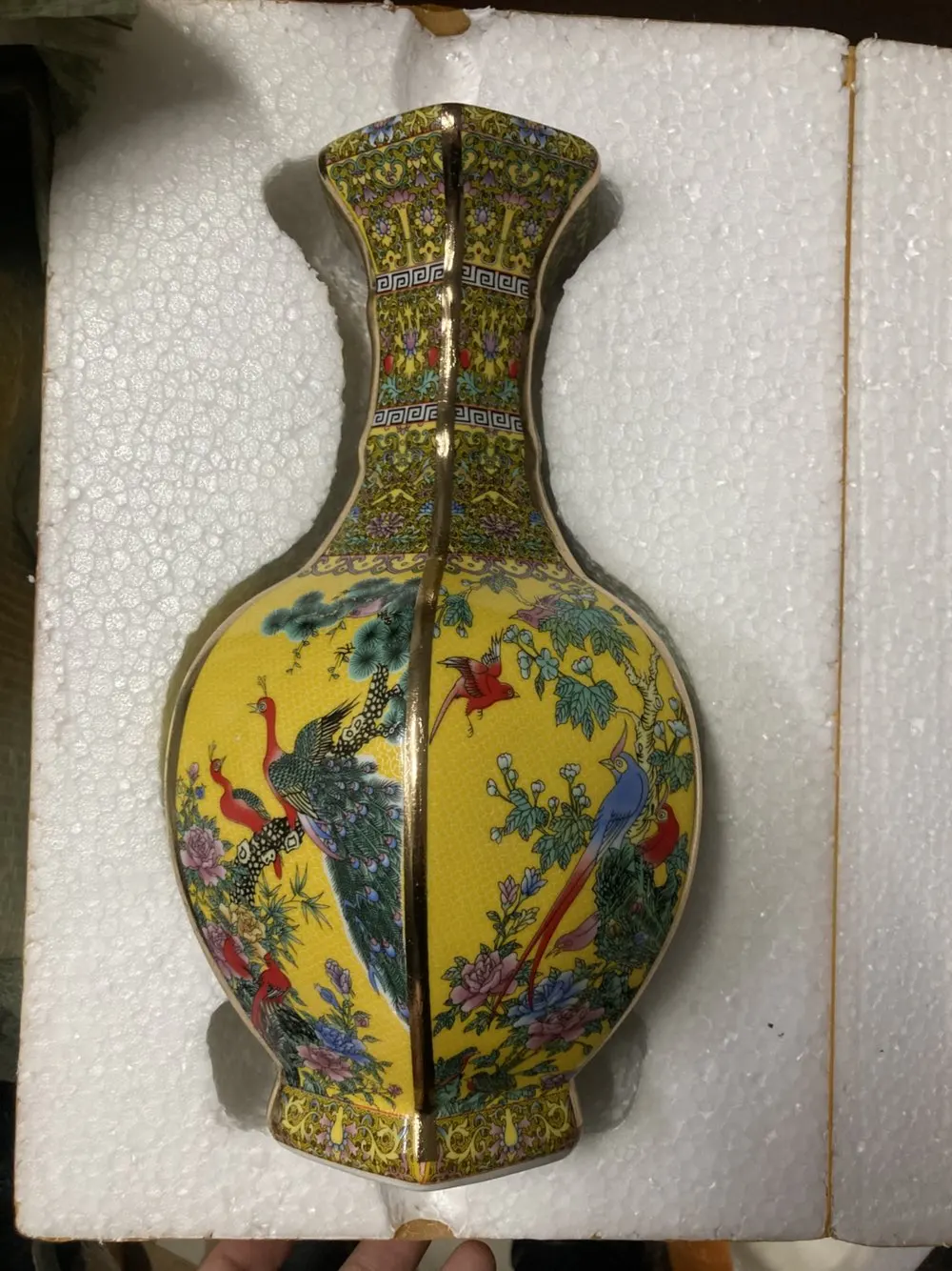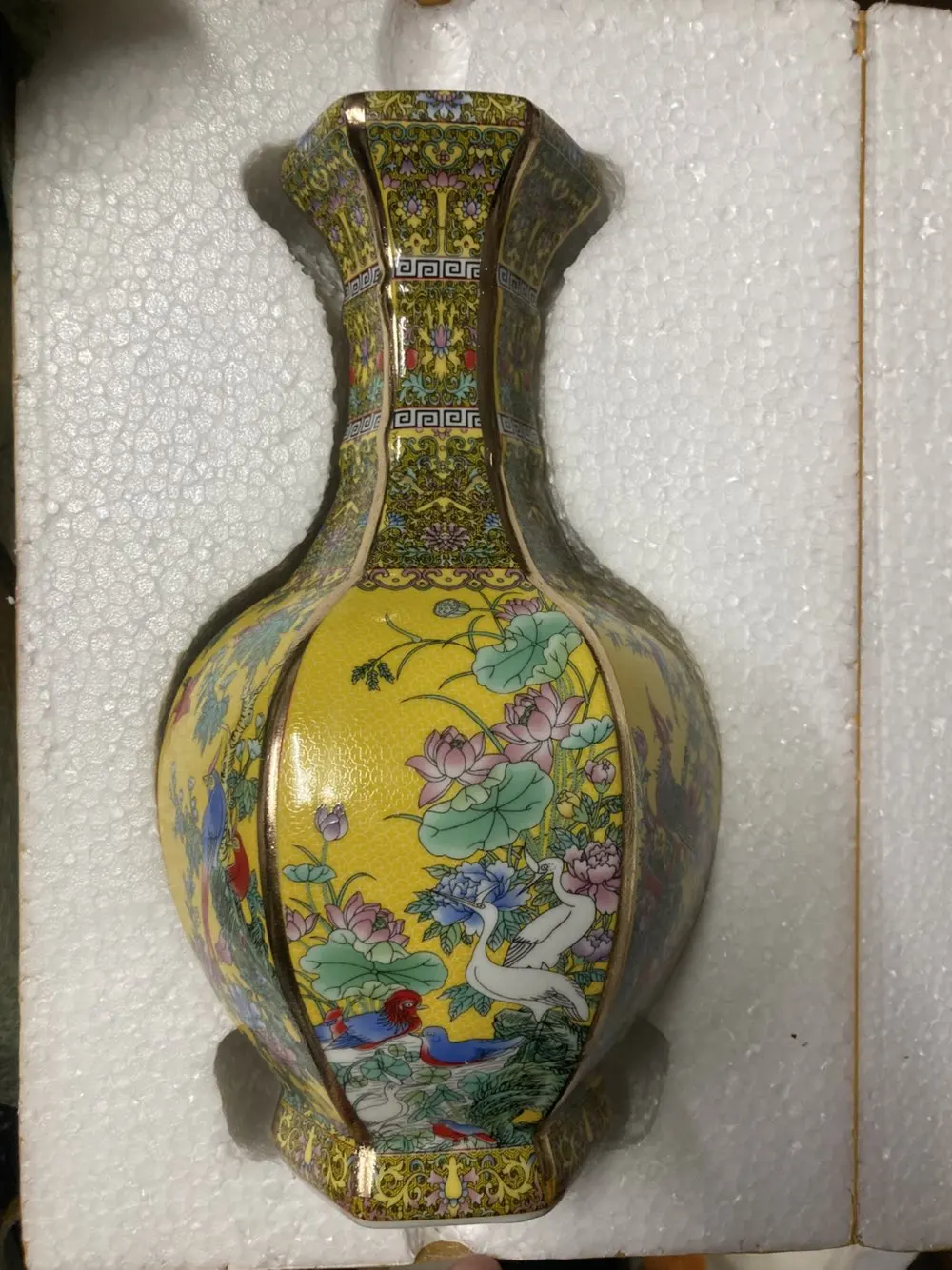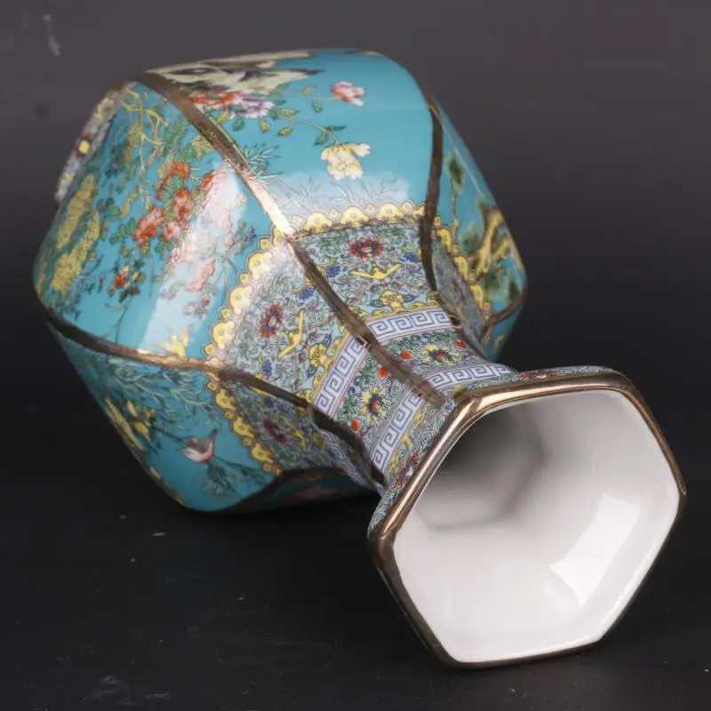 Jingdezhen-مزهرية بورسلين مينا ، زهرة سيراميك سداسية الشكل ونمط الطيور ، مجموعة زخارف عتيقة ، مجموعة أصلية