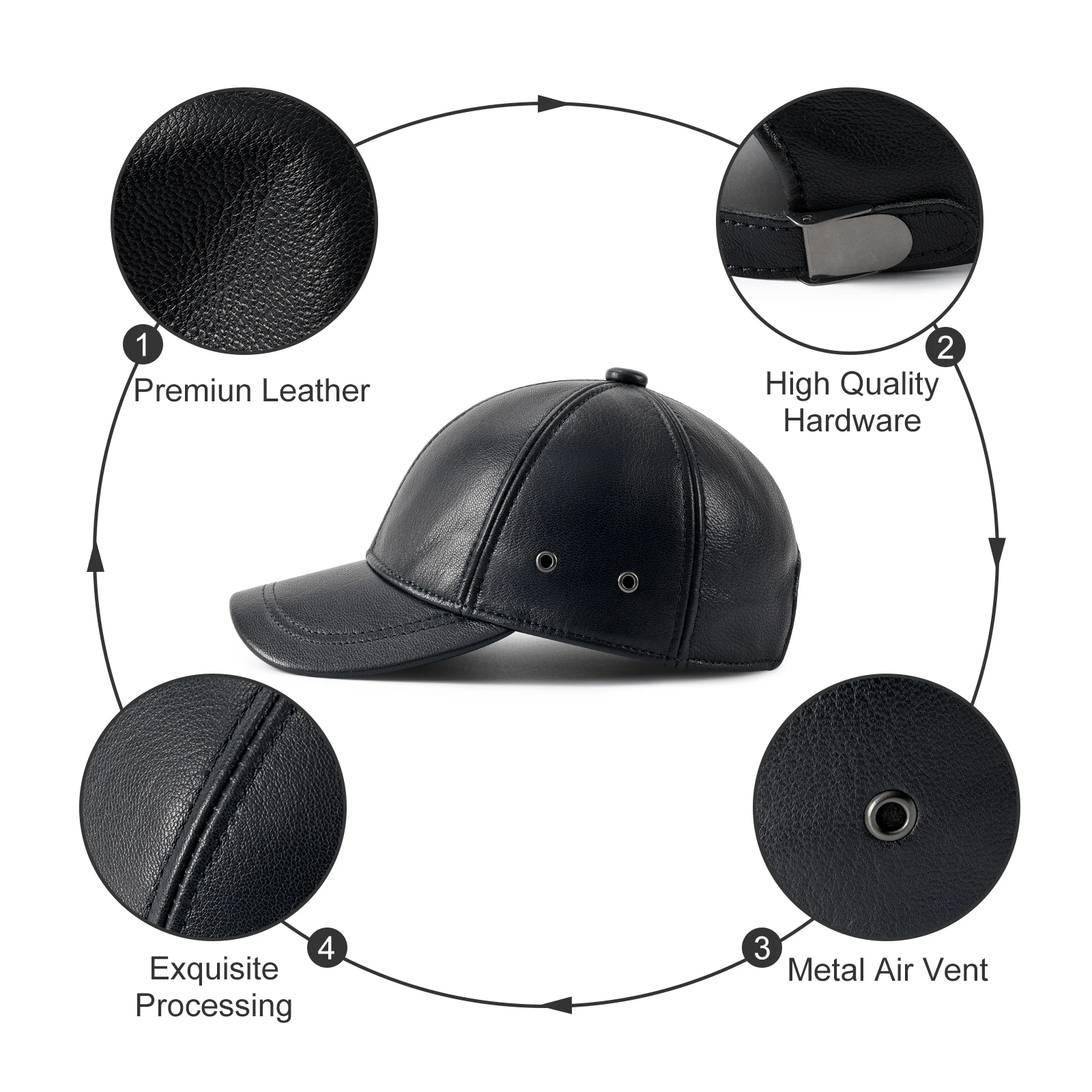 قبعة بيسبول رجالية قابلة للتعديل من FEINION قبعة شتوية للقيادة والصيد قبعة صيد من الجلد الطبيعي قبعة مسطحة على الموضة من اللبلاب.