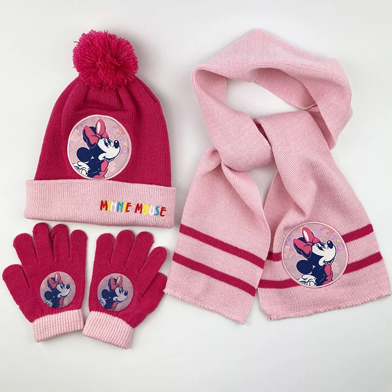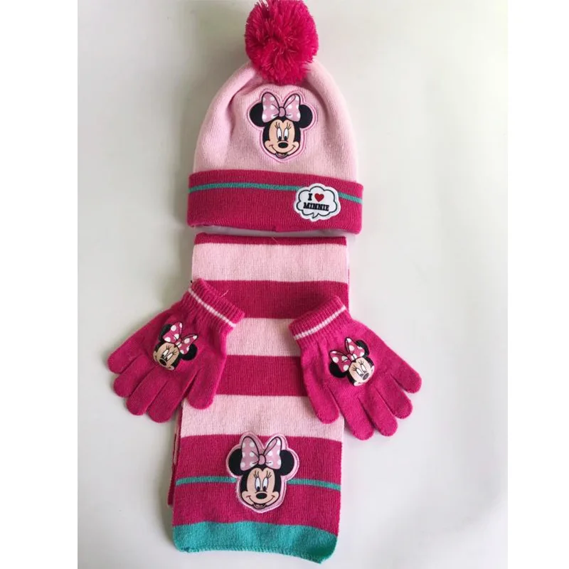 قبعة وقفاز وشاح ديزني-ميكي للأطفال ، إكسسوارات إلسا وانانا ، الحفاظ على الدفء ، غزل الصوف والحياكة ، غطاء الرأس المجمد ، 3 مجموعات ، الشتاء