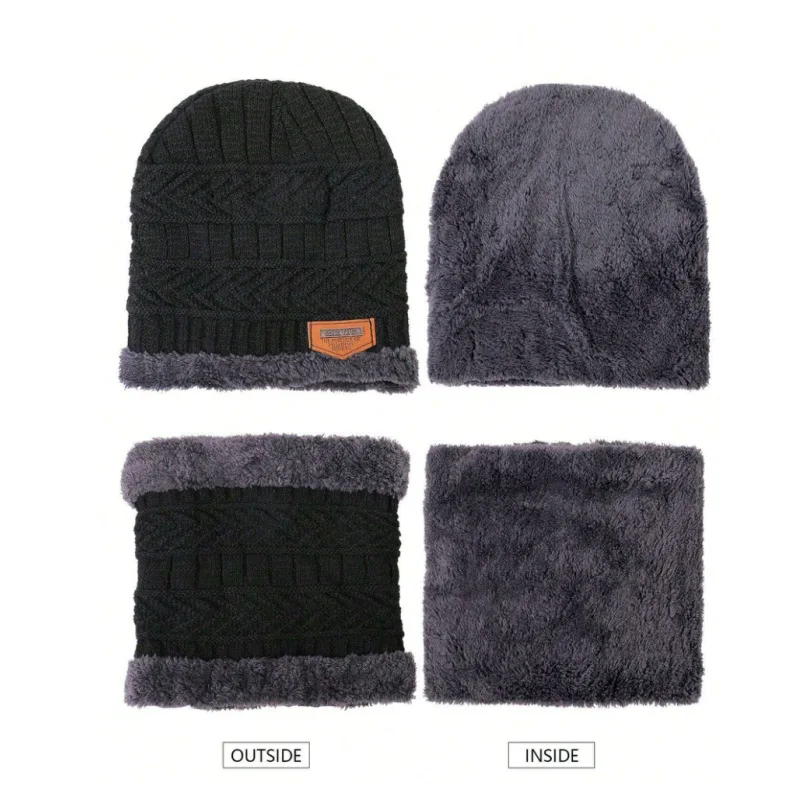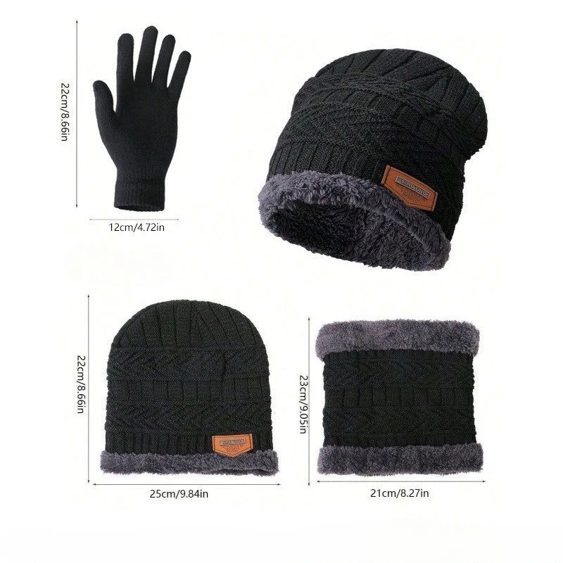 قبعة، وشاح، قفازات، طقم مكون من ثلاث قطع للرجال، قبعة شتوية سميكة دافئة، قبعة مريحة ومقاومة للبرد لحماية الأذن