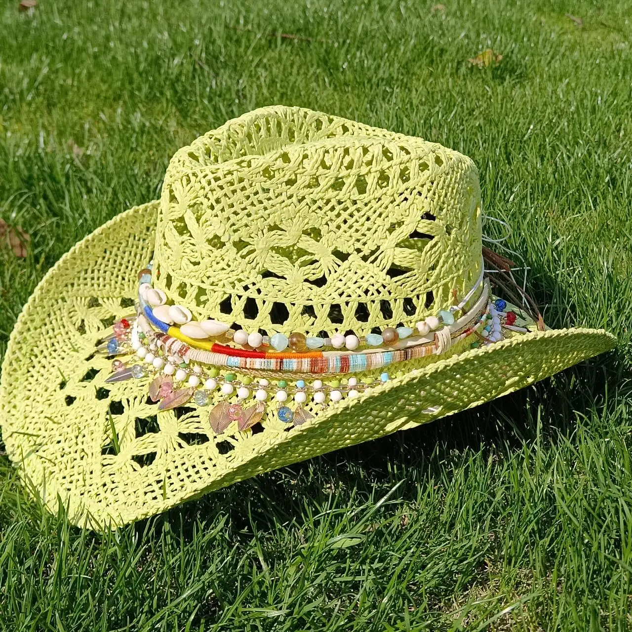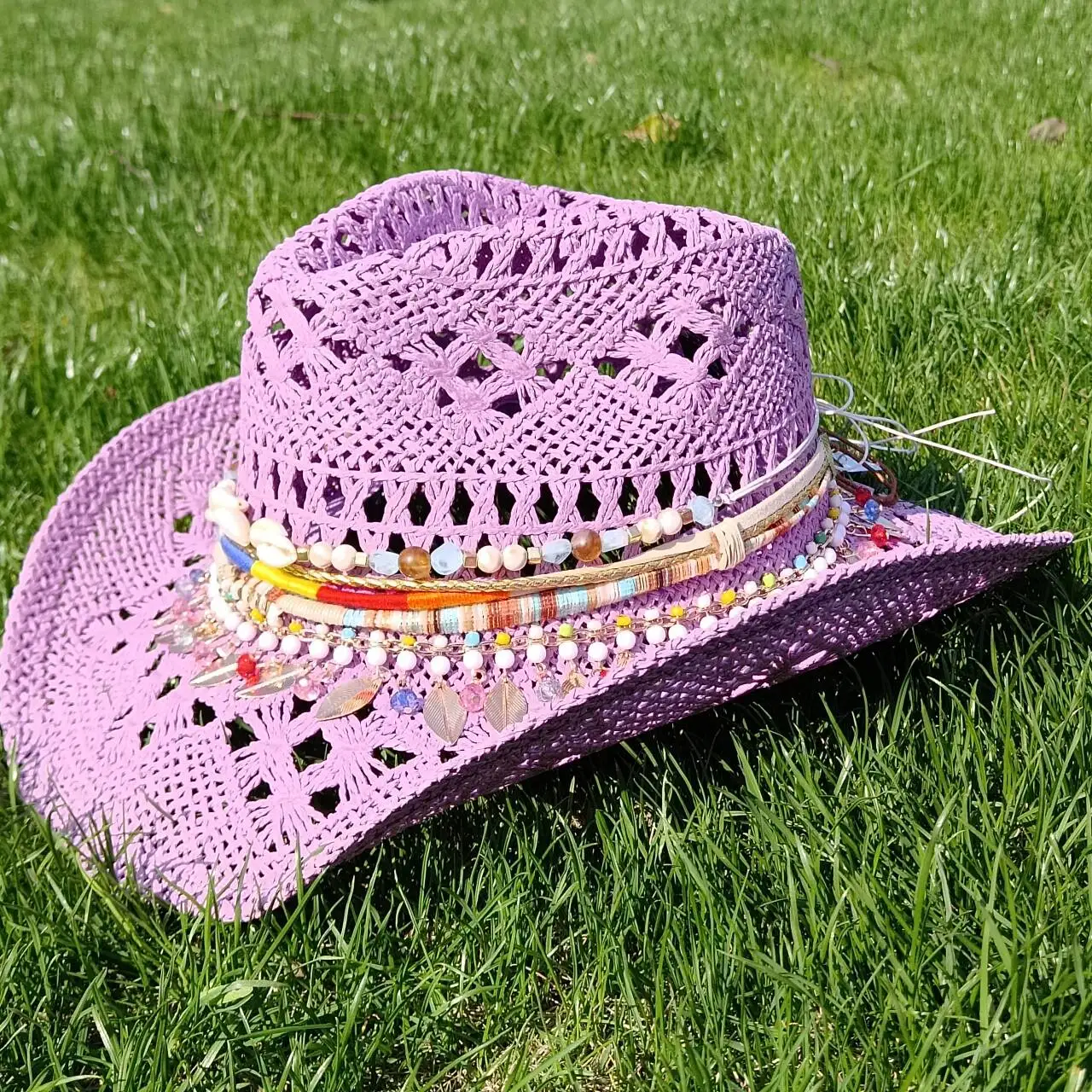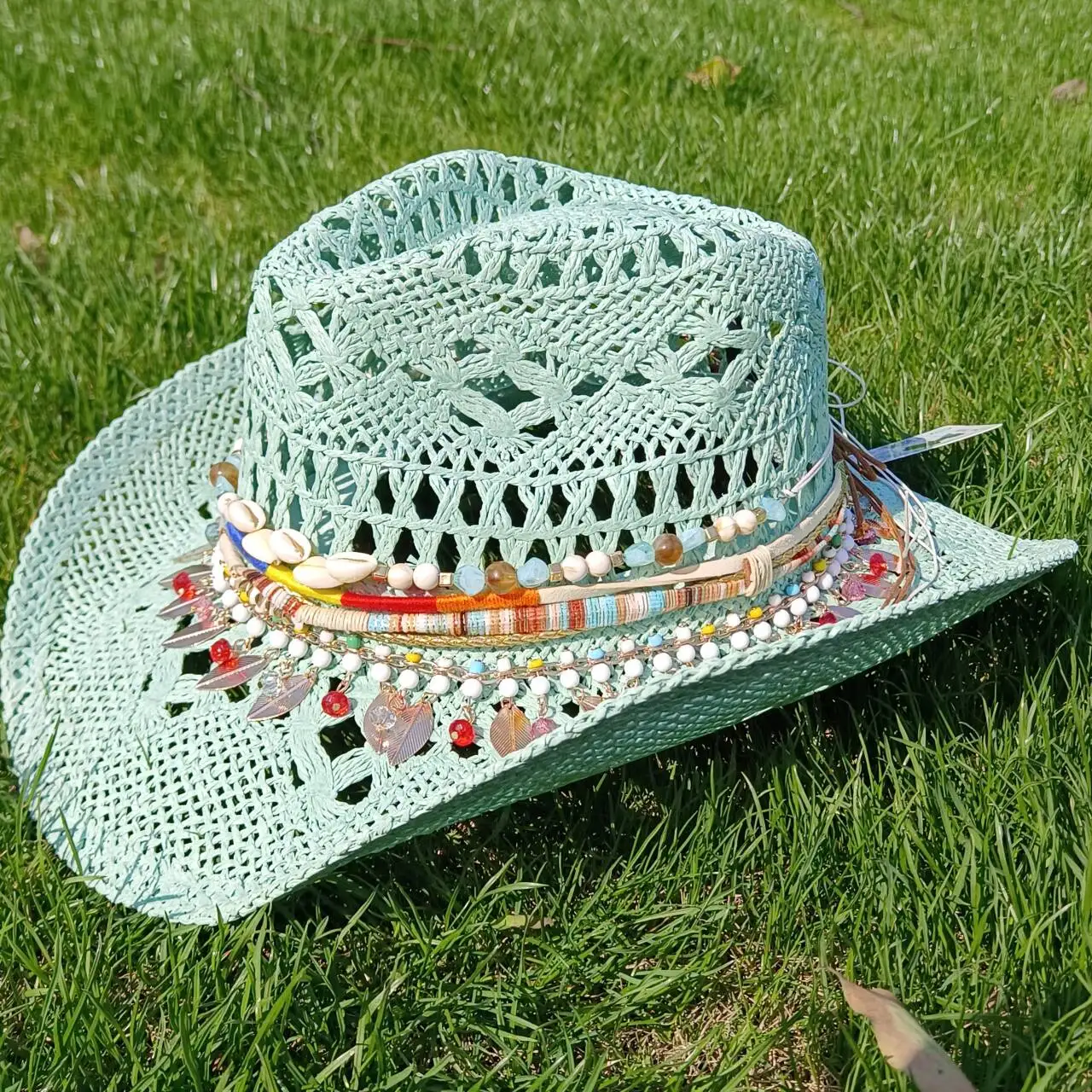 قبعة رعاة البقر النسائية على الطراز البوهيمي الغربي من ميليش، قبعة رعاة البقر من القش، قبعة رعاة البقر الغربية القوية للحماية من الشمس، قبعة رعاة البقر الغربية للشاطئ