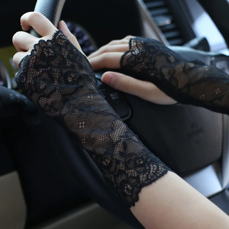 قفازات قيادة نسائية بنصف إصبع من الدانتيل ، قفازات بدون أصابع ، مرنة ، جيدة التهوية ، رقيقة ، شاشة تعمل باللمس ، في الهواء الطلق ، الصيف ، أزياء عرائس