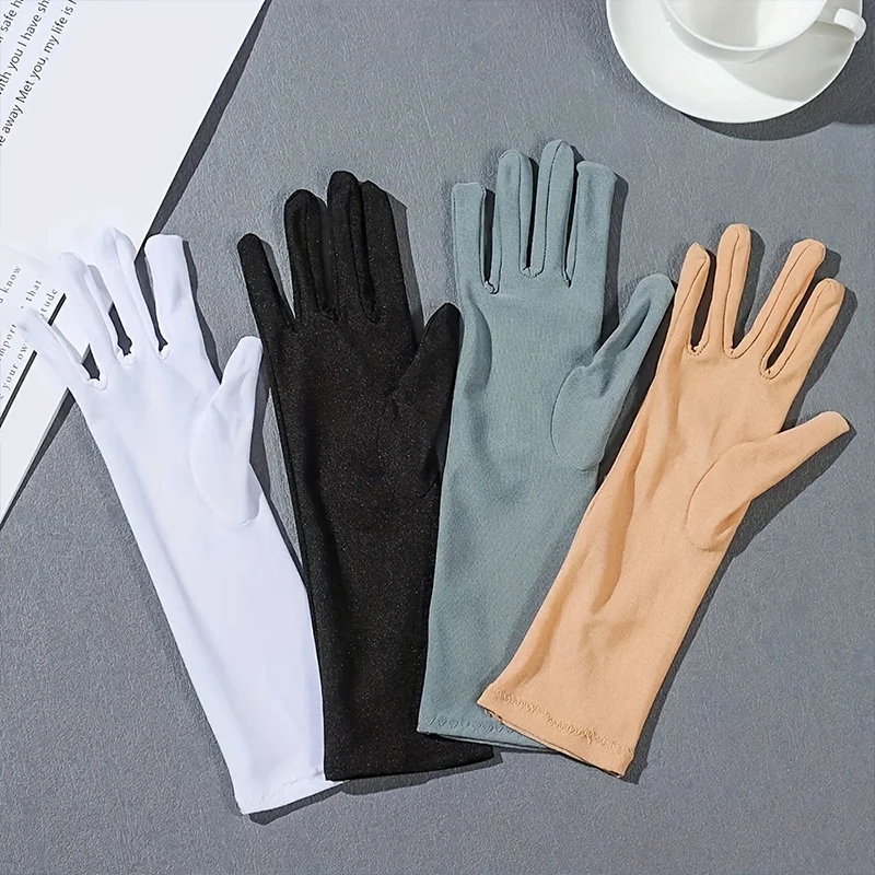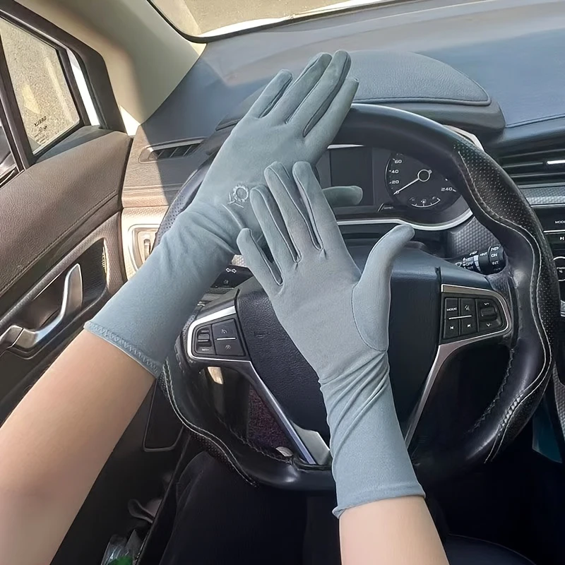 قفازات واقية من الشمس مطرزة متوسطة الطول للنساء صيفية رقيقة قابلة للتنفس قفازات مرنة للحماية من الشمس القيادة قفازات كاملة الأصابع