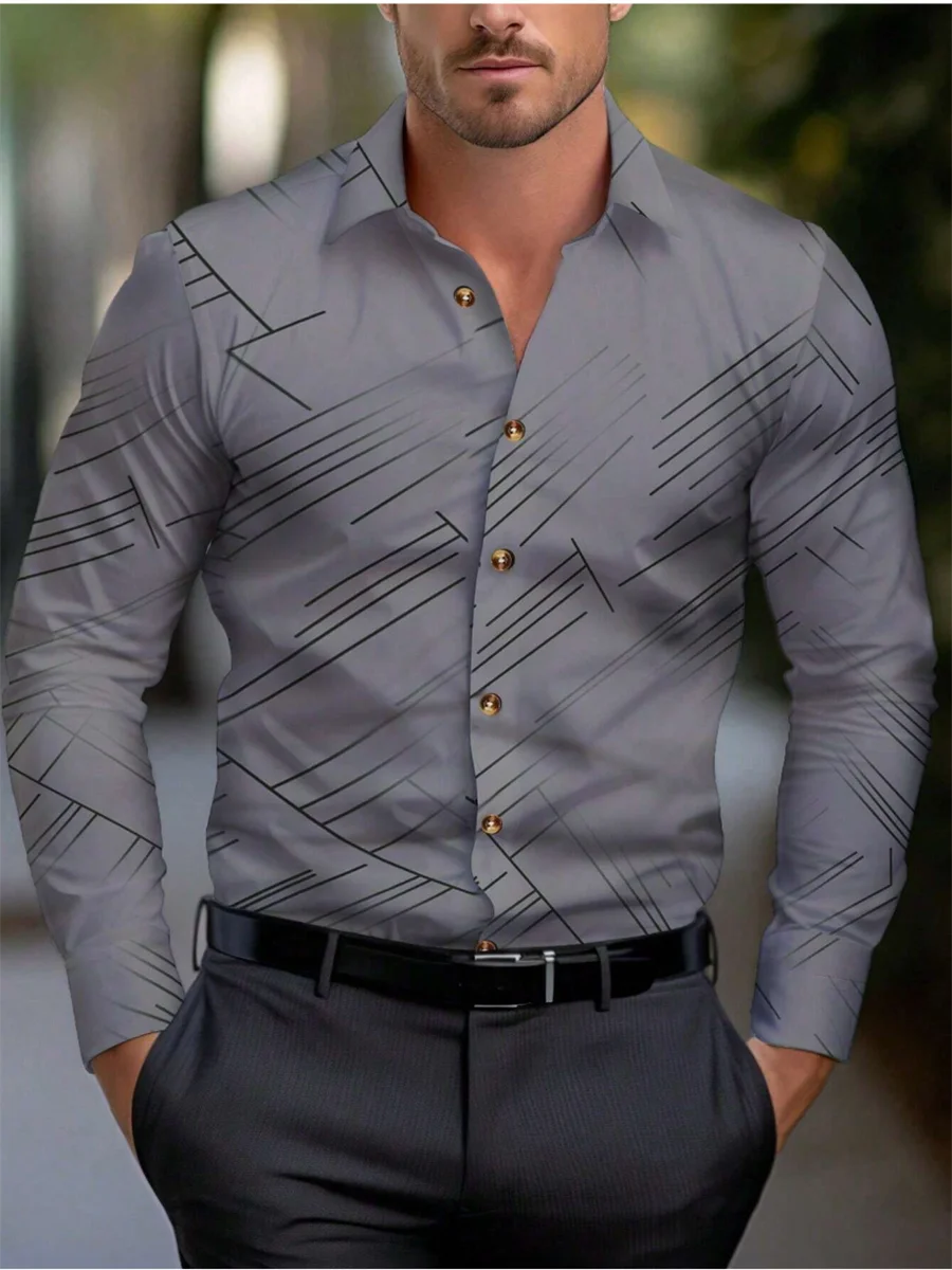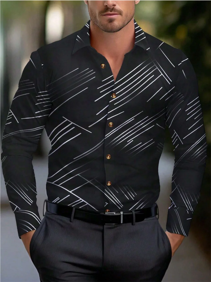 قميص رجالي برقبة دائرية وأكمام طويلة وطية صدر السترة مخططة كاجوال لفصل الربيع والخريف والشتاء والصيف