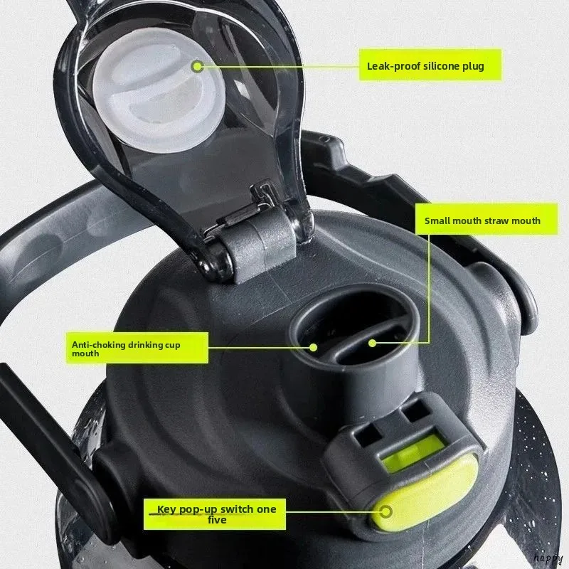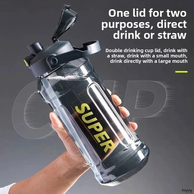 كوب بلاستيكي جديد ذو سعة كبيرة مع زجاجة مياه رياضية من القش للرجال كوب لياقة خارجي مع مقبض كوب مساحة للسلع المنزلية