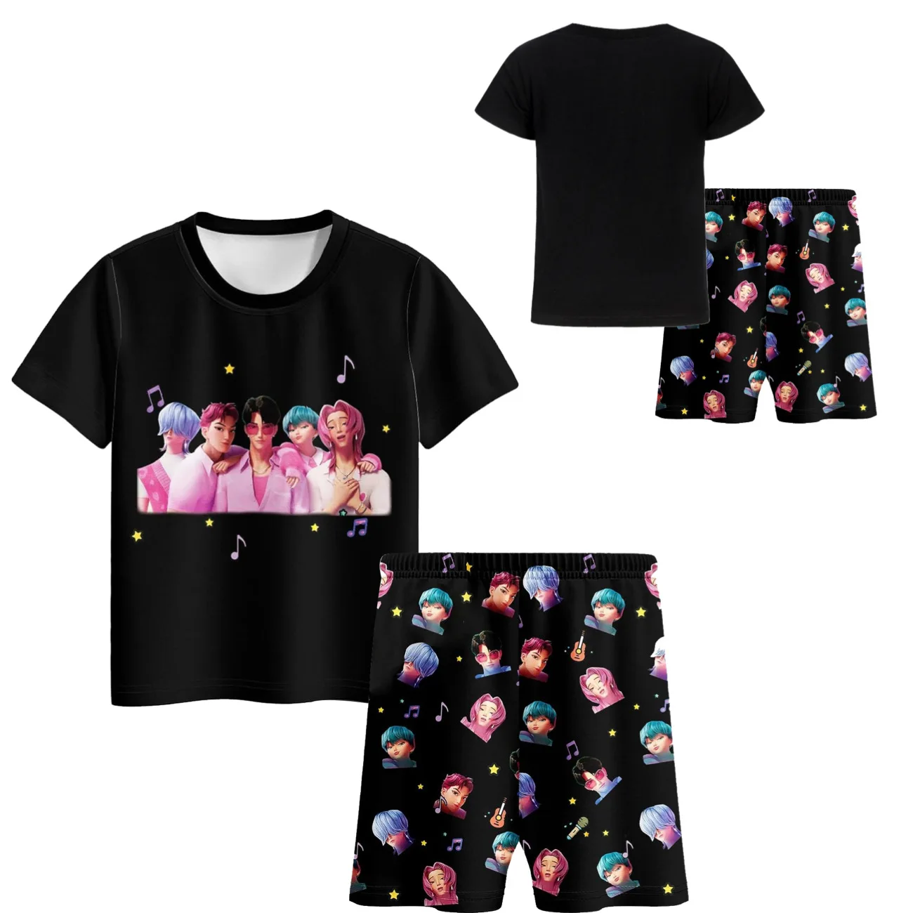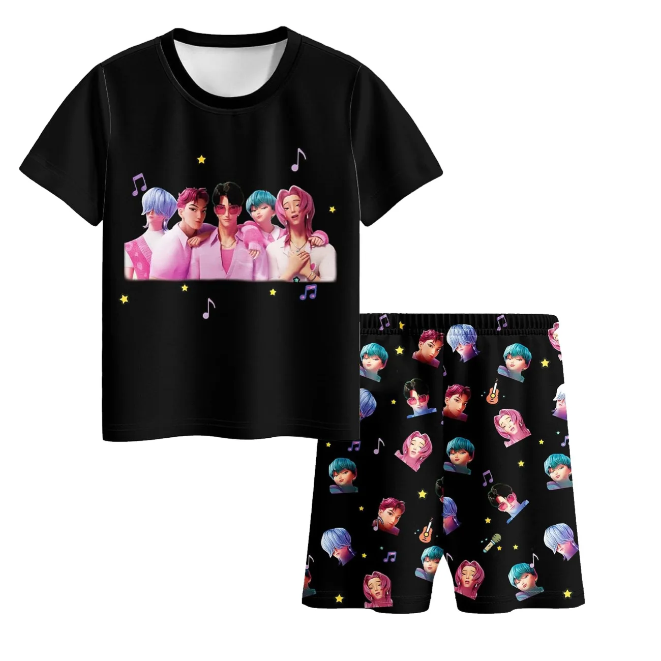 KPop شيطان الصيادين بيجامات أطفال ملابس بلايز السراويل 2 قطعة مجموعة الكرتون ملابس خاصة بيجامات للأطفال الفتيات ملابس منزلية للأطفال ملابس النوم