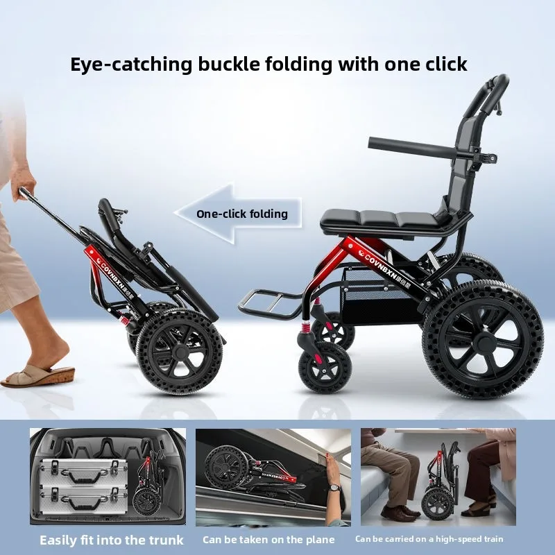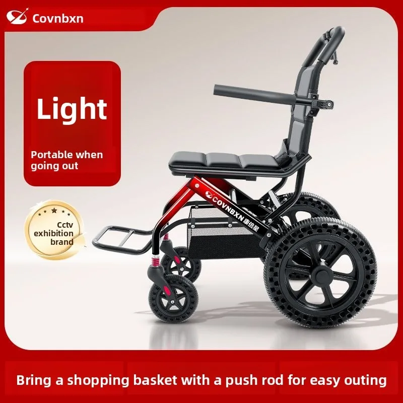 كرسي كانغ المتحرك خفيف الوزن قابل للطي لكبار السن مع سلة تخزين لكبار السن والمعاقين كرسي متحرك للسفر