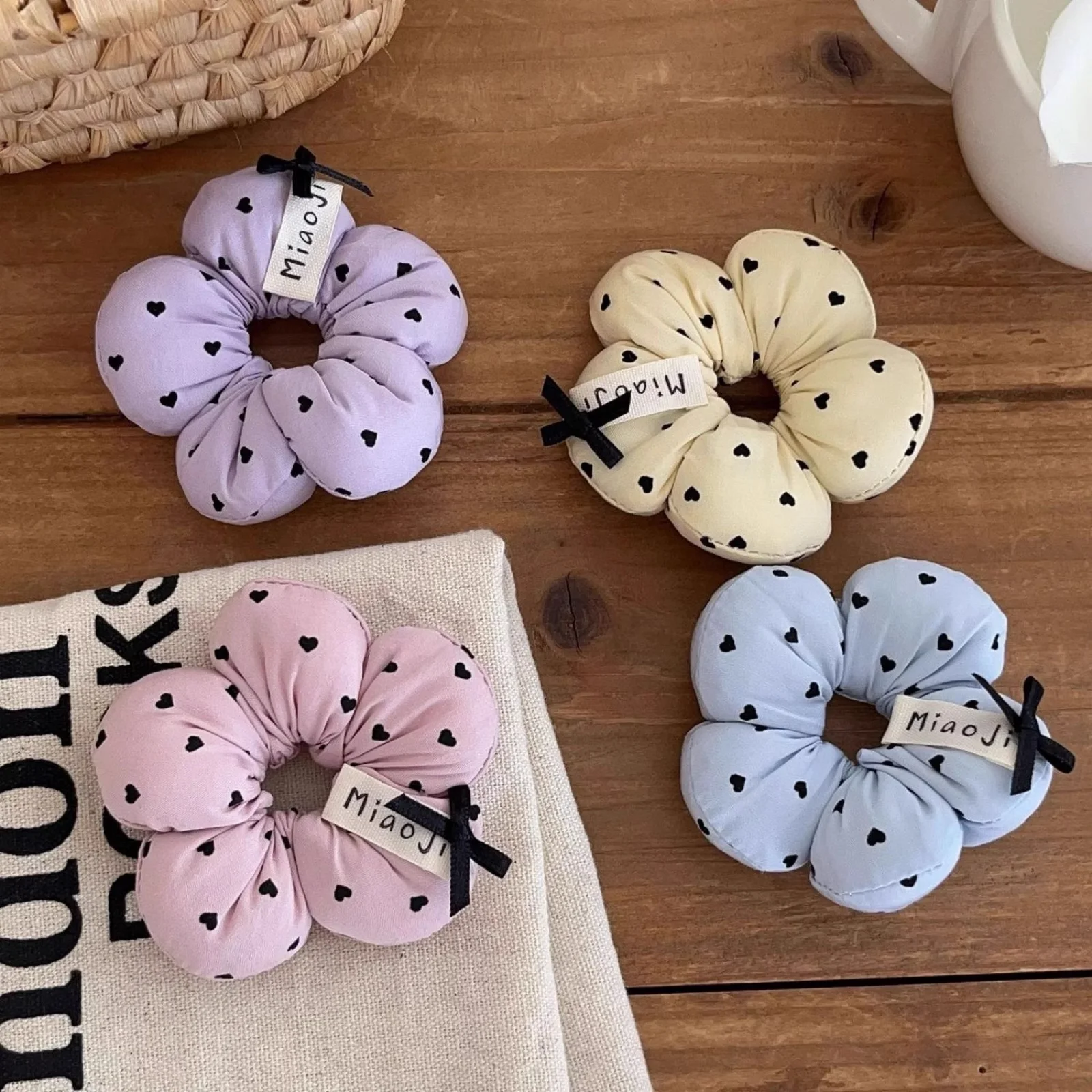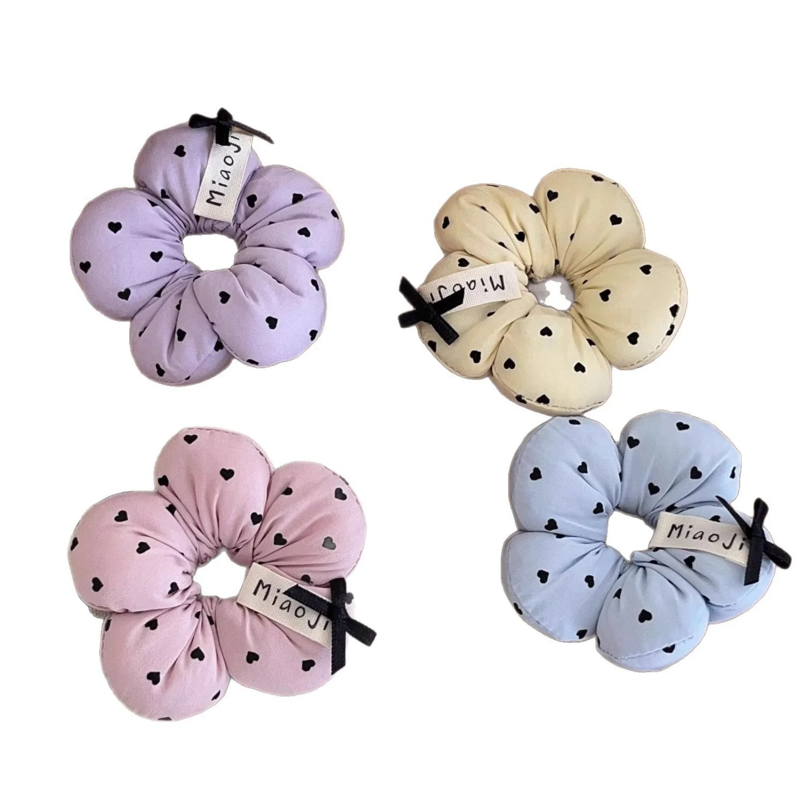 قطعة واحدة من ربطات شعر على شكل زهرة لطيفة للأطفال، على شكل قلب - ربطات شعر مرنة مطبوعة، إكسسوارات شعر حلوة للفتيات