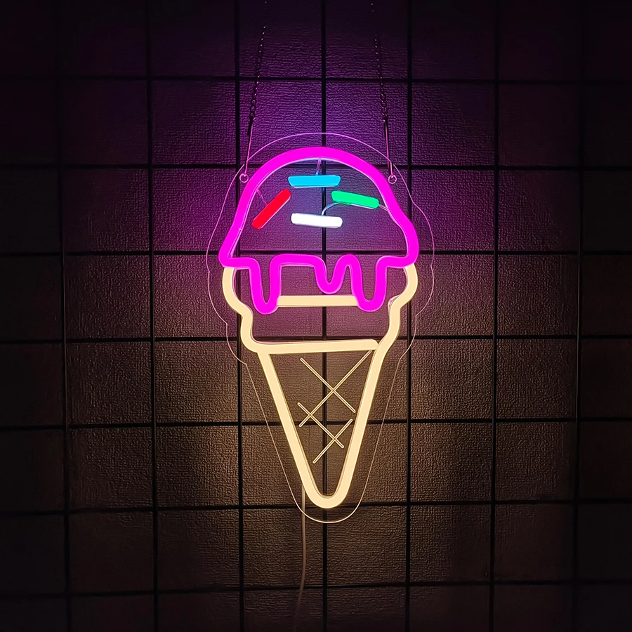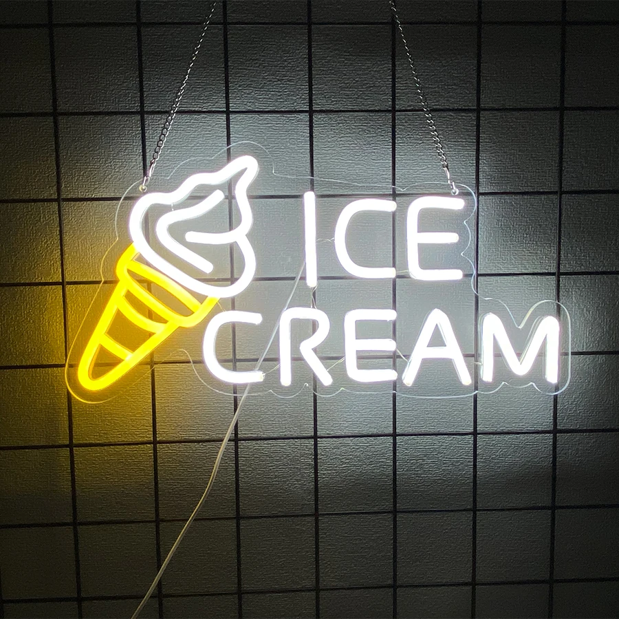 لافتة نيون آيس كريم لديكور الحائط، ضوء نيون LED للحفلات، غرفة النوم، عيد الميلاد، ديكور عيد الميلاد، المطعم، متجر الحلوى، نافذة المتجر