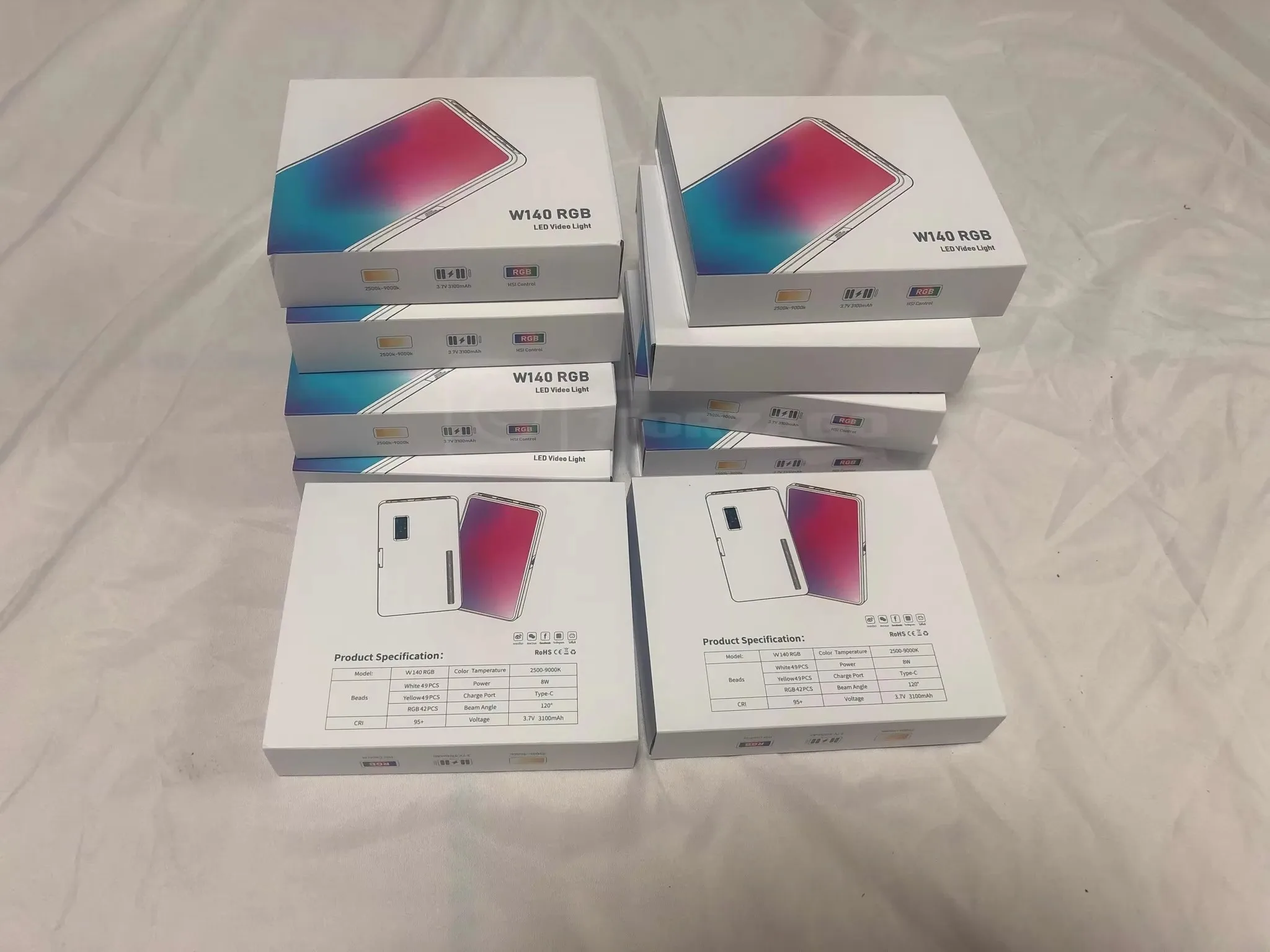 للبيع LUXCEO W140 RGB LED الفيديو الضوئي كامل اللون 2500 إلى 9000 كيلو 8 واط 3100 مللي أمبير التصوير كاميرا ضوء عكس الضوء مصباح لوحة الجيب
